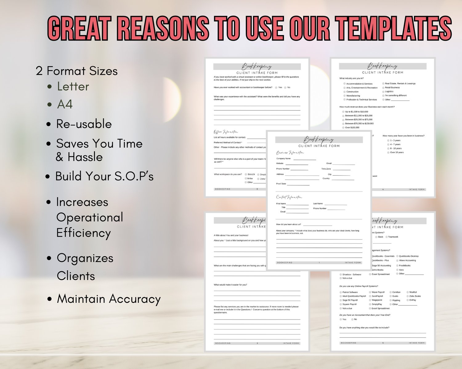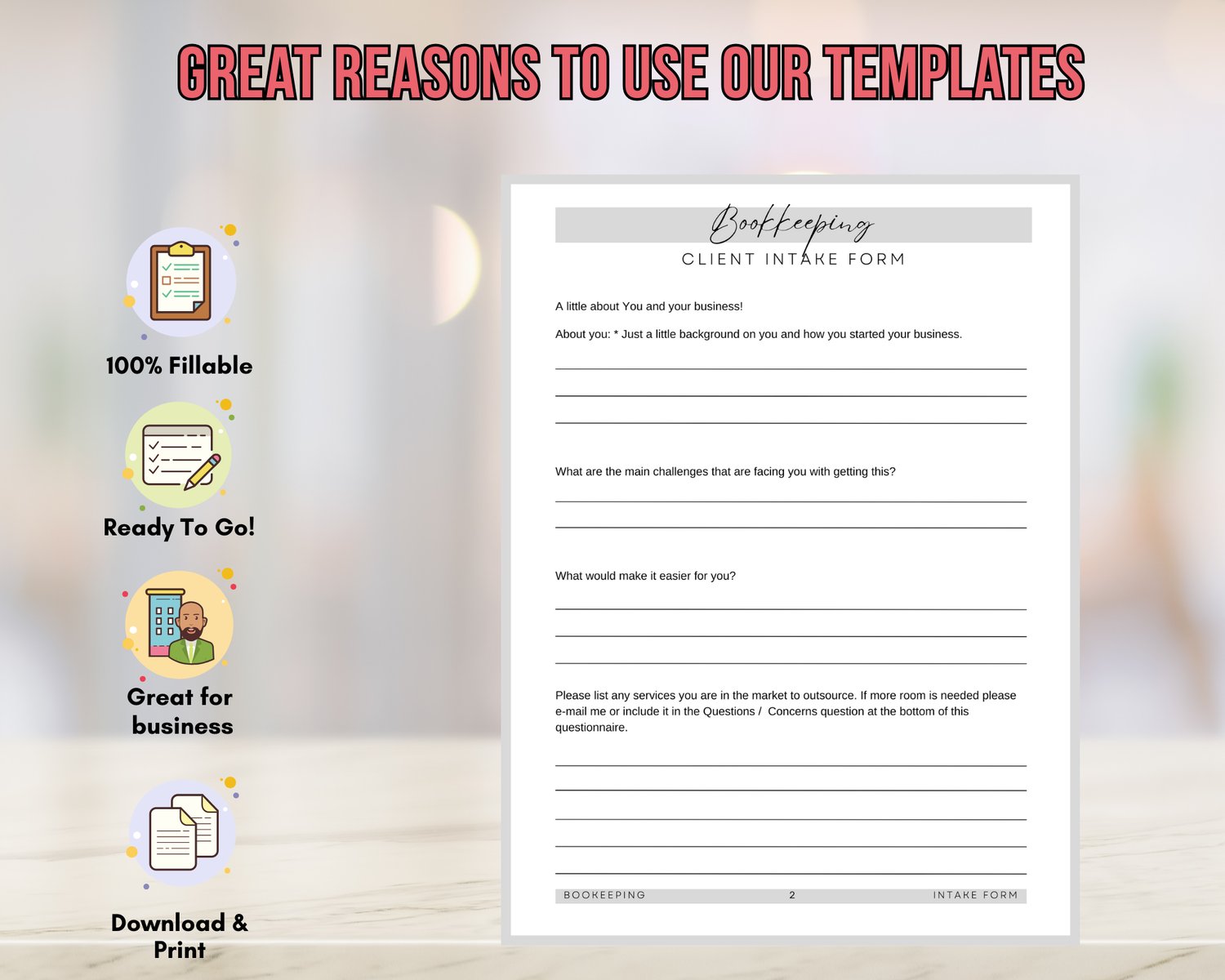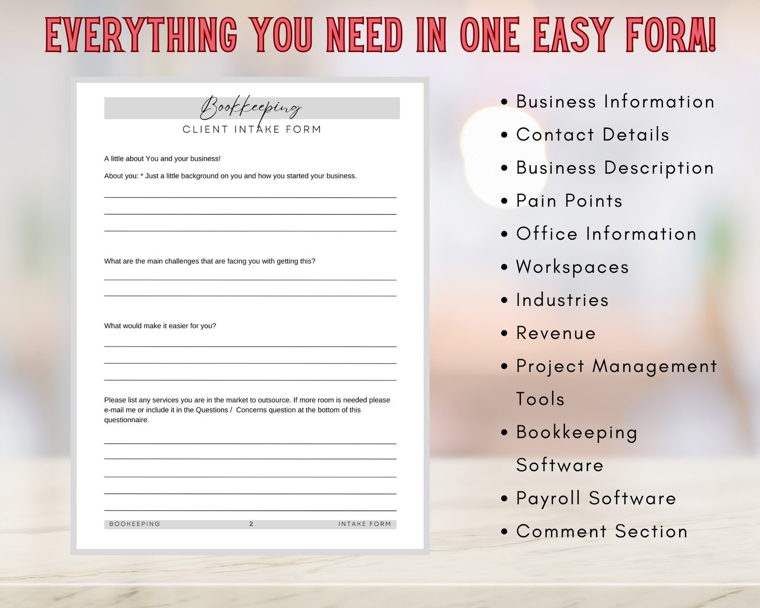 š Don't let bookkeeping overwhelm you! Invest in efficiency and organization today with our customizable intake form template.