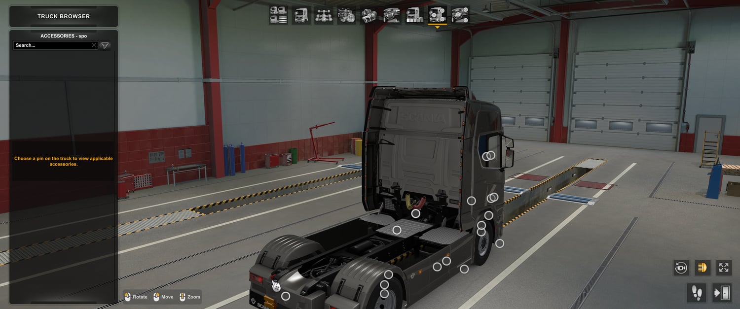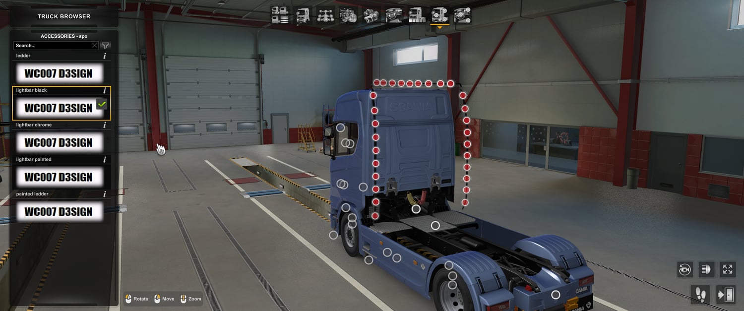 Spoiler light bar V1 is new option of tuning, new option is available only with this Scania no spoiler mod V1 or Scania no spoiler mod V2 and not work with and Base game Scania truck