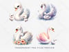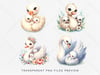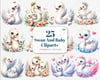 Celebrate the bond between Mothers and Child with our Watercolor Mother's Day, Swan and Baby Clipart Collection. This heartwarming set features 25 unique PNG of Swan mothers lovingly interacting with their babies, each Clipart in soft watercolor hues that evoke warmth and affection. Bring the enchanting beauty of the forest to your creative projects with our Mama and Baby Swan Clipart Set.