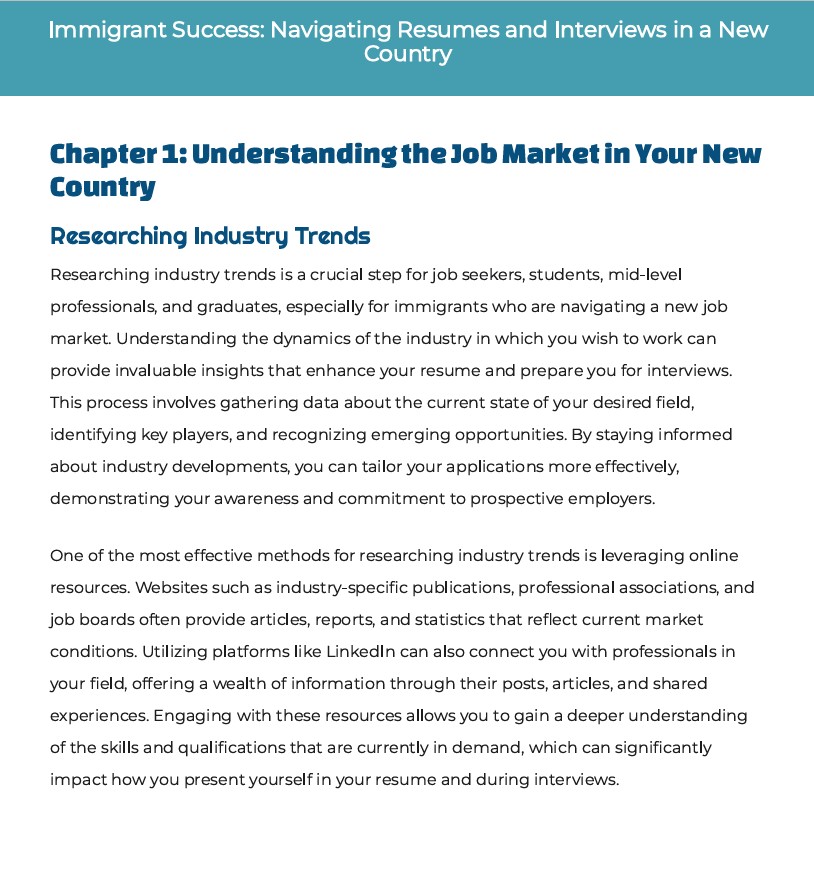 "Immigrant Success: Navigating Resumes and Interviews in a New Country" is your trusted companion for building a career that honors your story and your skills.