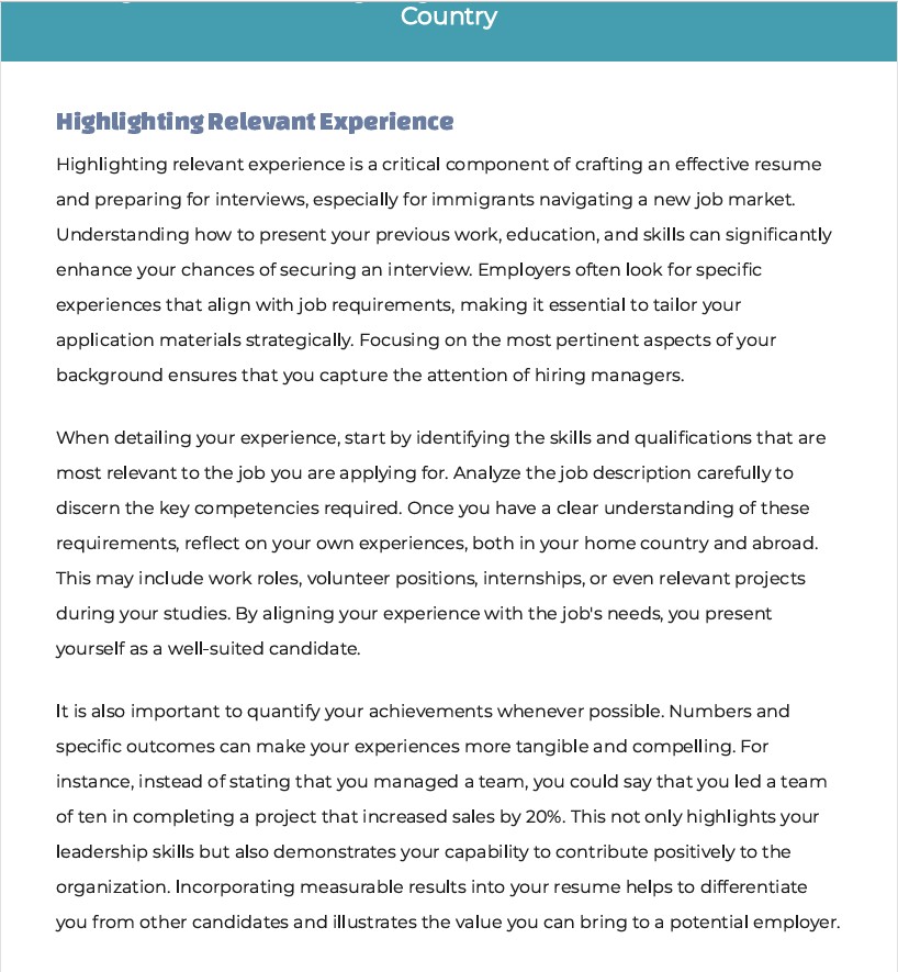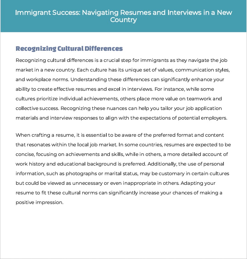 Immigrant Success: Navigating Resumes and Interviews in a New Country.