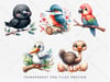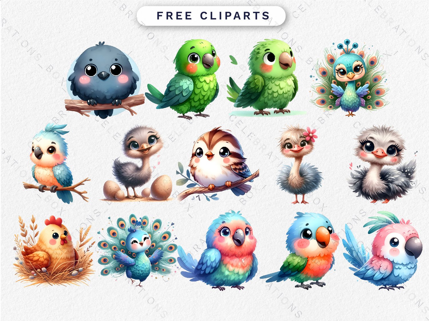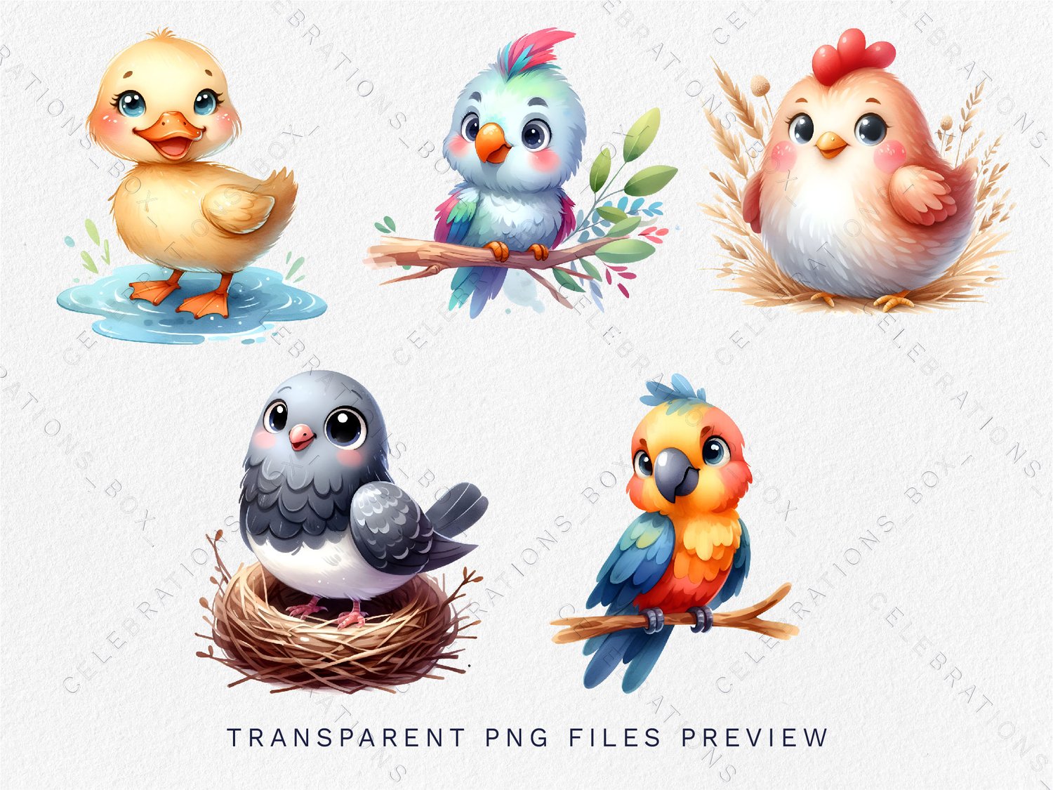 Enjoy this super cute set of "Cute Birds clipart", a collection of 25 adorable Cute Bird. This Spring Birds bundle captures the beauty and diversity of Jungle Birds on Branch in a charming and playful style. Each high-resolution image features a different bird species, from the tiny Hummingbird to the majestic Eagle, all rendered in vibrant colors and cute, engaging poses. These images are perfect for a wide range of projects, including educational materials, bird-themed party decorations, scrapbooking, and crafting. The transparent backgrounds make these illustrations easy to integrate into any design, offering versatility for both digital and print use. Whether you're a bird lover, an educator, or a creative designer, these delightful bird images will add a touch of nature's wonder to your projects. Downloadable instantly, they're ready to fly into your creative world and bring your ideas to life!