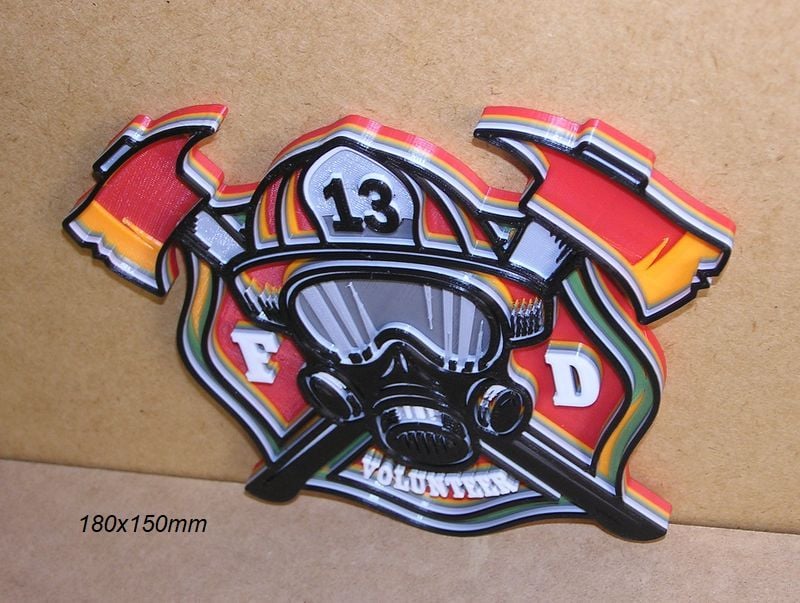 Gas mask helmet and fire axes Poster, Sign, Logo of the firefighters, these STL and Gcode files have been created to be printed in various colors with any FDM type printer. The color changes have been made with the Elegoo Neptune 3 Pro printer, but they can be printed on any printer.