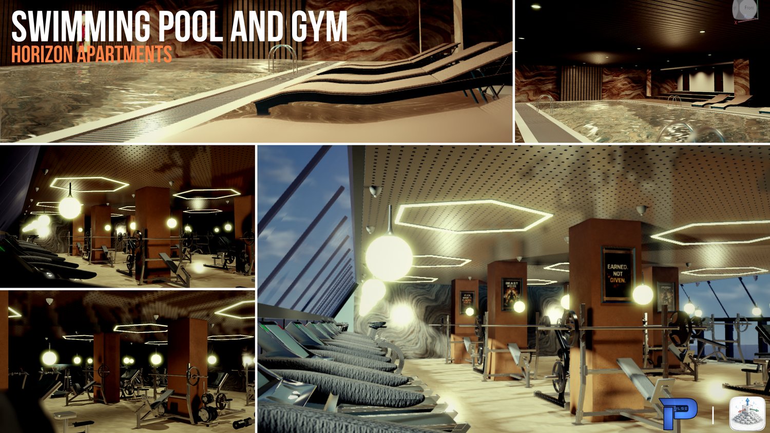· The Campus has an entertainment Complex, which has a swimming pool and a Gym, which is again fully modelled with imported assets from Blender