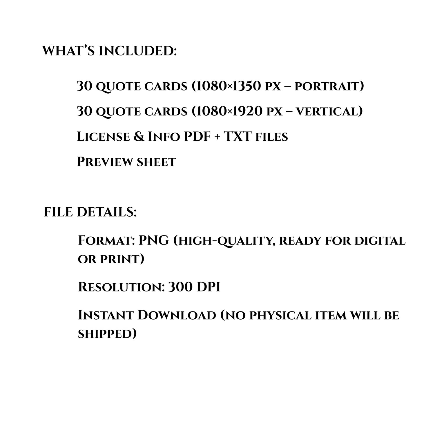 • 30 Quote Cards – 1080x1350 px (Square/Reel Format)