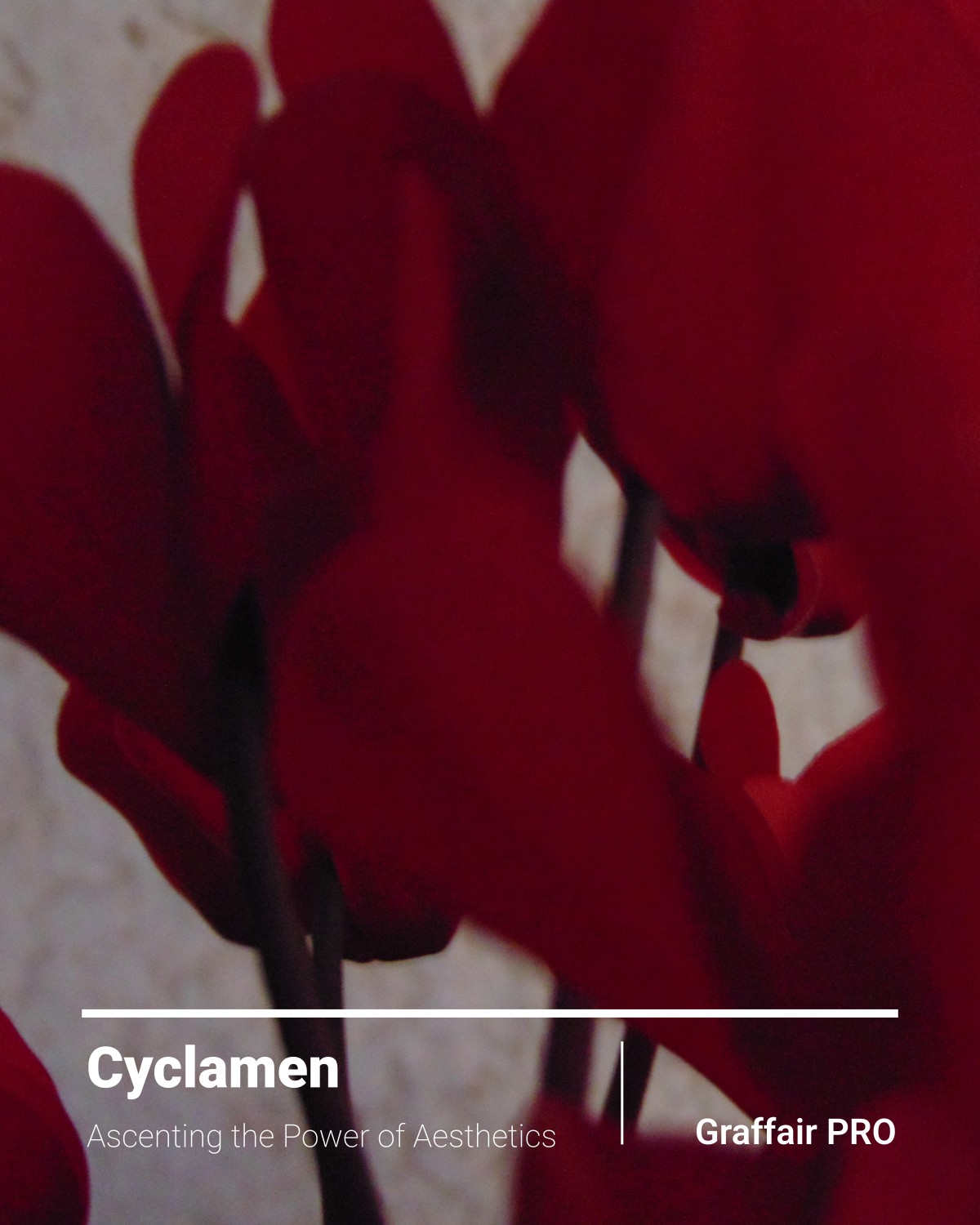Cyclamen: Two captures of red Cyclamen blossoms, evoking a warm, creative, and moody atmosphere.