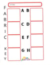 Blank squares for Fabrics labeled A-H (you can rename if your pattern has different labels). Example shown with fabric (not included in download).