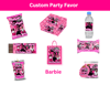 The Barbie Canva editable party favor design and mockup for items such as water bottles, chips, rice crispies, Capri Sun, candy bars, Pringles, and boxes is a delightful and cohesive template set, perfect for any Barbie-themed celebration. Each item design features a signature Barbie aesthetic, with a vibrant pink color palette, glitter accents, and playful patterns like polka dots and stripes. The water bottle labels, chip bags, rice crispy wrappers, Capri Sun pouches, candy bar covers, Pringles wraps, and favor boxes all include customizable text areas for personalized messages, names, and event details. Barbie's iconic silhouette and branding elements are seamlessly integrated into each design, ensuring a consistent and enchanting look across all party favors. The templates are easily editable, allowing users to adjust colors, fonts, and images, making it simple to create unique, stylish, and memorable party favors that bring the magic of Barbie to life.