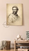 Looking for a special gift for someone named James? This vintage-inspired pencil sketch of Saint James is a meaningful choice. This artwork is so artistic and unique that it will be cherished as a thoughtful present. With its classic charm, it's a timeless piece that can bring a touch of spirituality and elegance to any space.