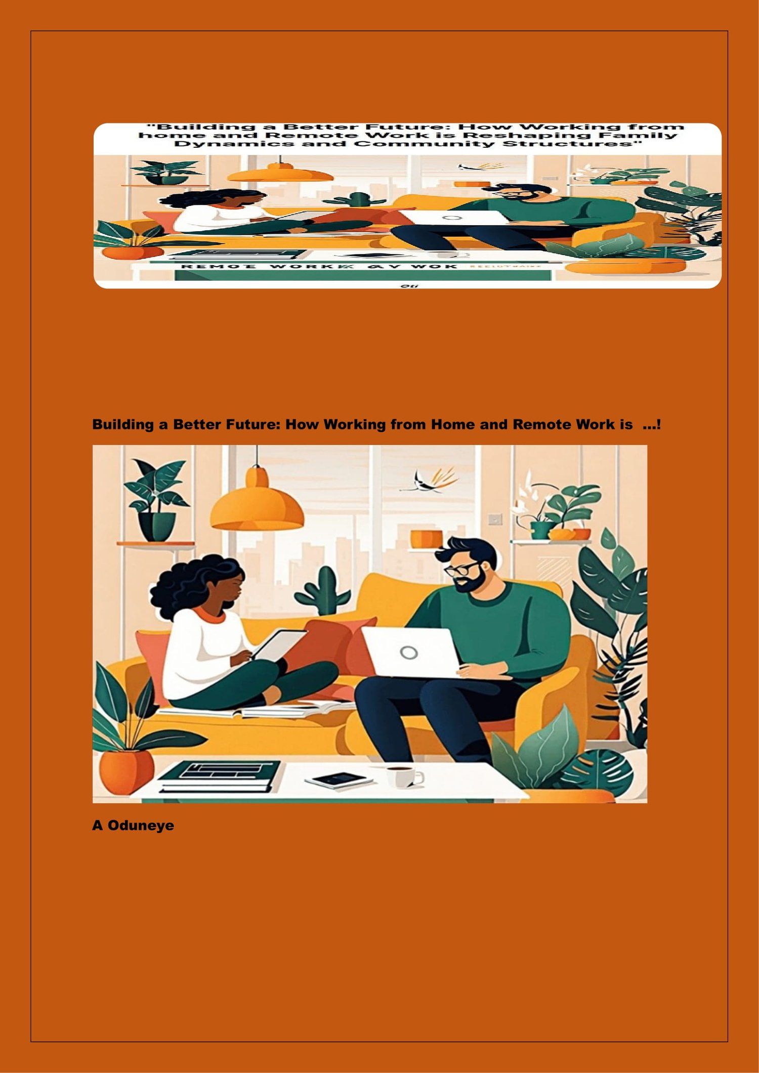 "Building a Better Future: How Working from Home and Remote Work is Reshaping Family Dynamics and Community Structures" delves into the intricate dynamics of remote work, exploring its impact on society, family life, and intimate relationships.