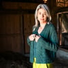 The cardigan is designed to have a roomy fit, with approx 15 – 20 cm / 6 – 8” of positive ease around the bust. Sample is shown in size 2 with bust darts, and has 17.5 cm / 7” of positive ease around the bust.