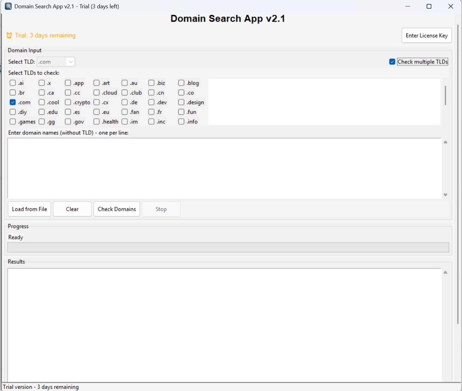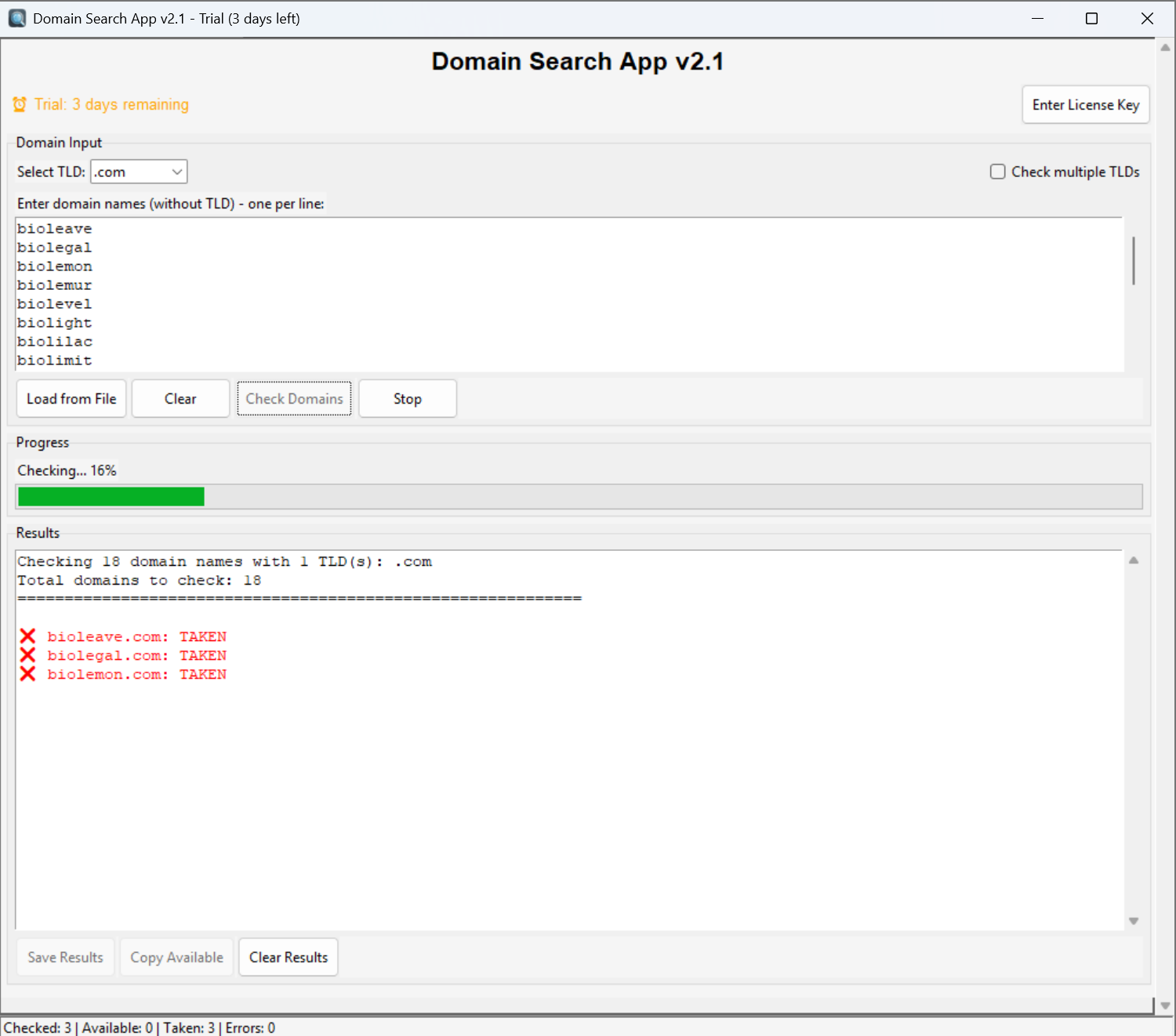 Take control of your domain searches with the Domain Search App, a powerful Windows desktop app designed for accuracy, and unlimited use. Perfect for entrepreneurs, domain investors, agencies, and web developers , this tool makes bulk domain availability checking simple and efficient.