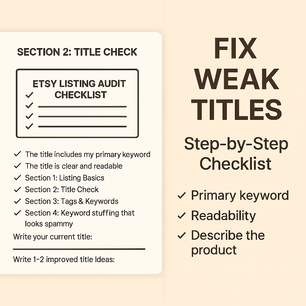 Fix weak Etsy listings fast with this step‑by‑step Listing Audit Checklist.