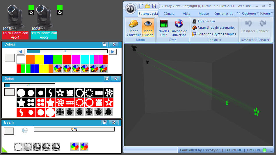 Esta Librería SSL2 está optimizada para trabajar con Magic 3d Easy View. Es decir para ver una representación 3D de las secuencias que estemos realizando con Freestyler, QLC+ o cualquier otro soft que se conecte con Magic 3d.