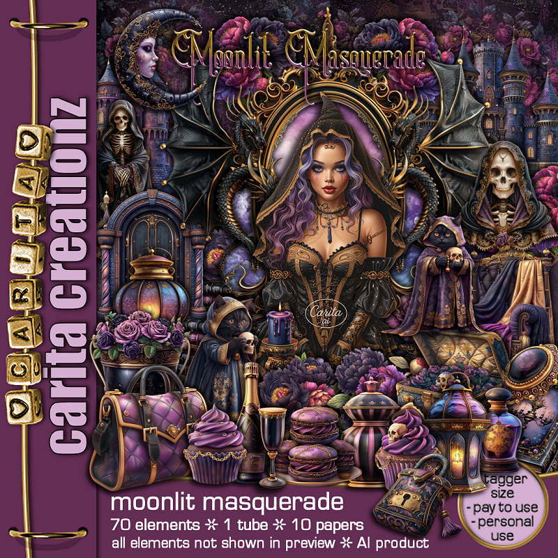 Gothic/halloween themed kit with 70 elements, 1 tube and 10 papers.