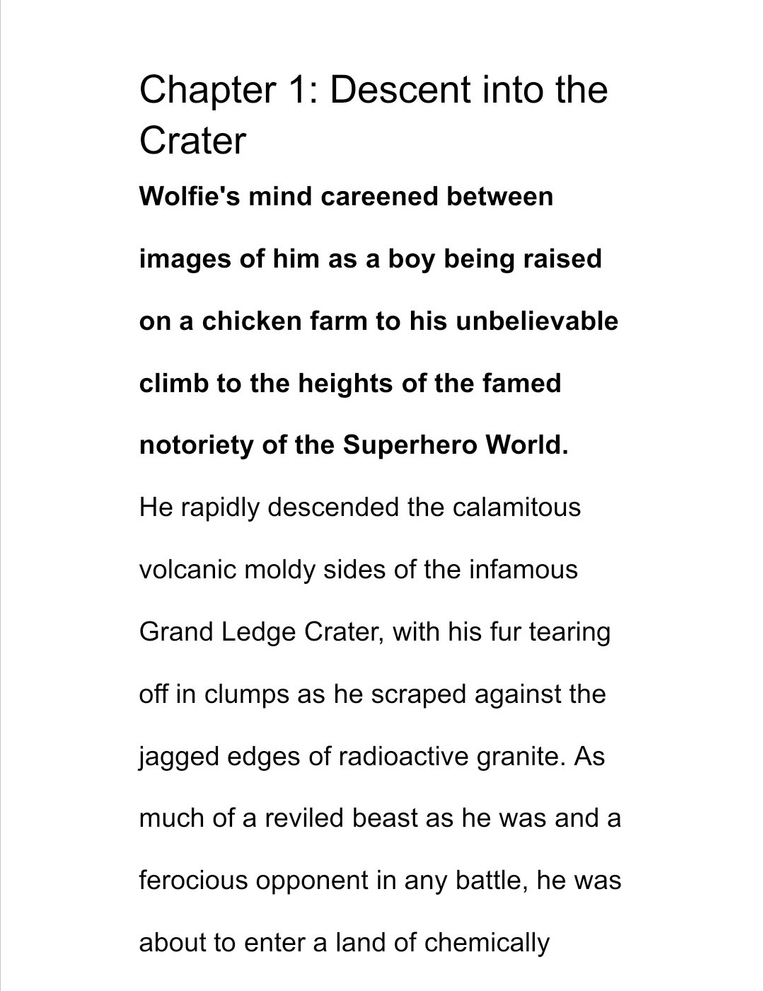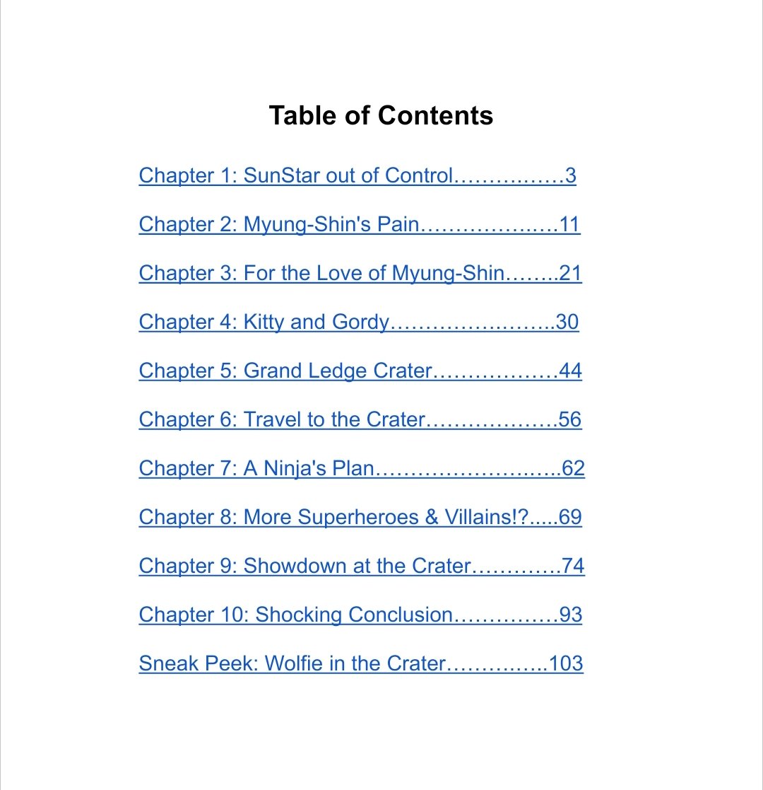 Includes 5 Free Books in the series on Superheroes and Villains. This is an Action-Packed novel detailing a showdown between the newest Superhero Myung-Shin Yoon and a Mega Superhero named SunStar, accompanied by a Werewolf battle companion - Wolfie. Also includes a Sneak Peek of “Wolfie in the Crater,” its exciting sequel. The story picks up after a day in which SunStar's alter ego, Gordy Jenkins, is hit by falling rocks and has episodic amnesia. It clears up, but unbeknownst to him, during that timeframe he flailed around dramatically with little to no control over his flying capabilities (likely due to defects in his Titanium Resistant System, the metal being his lethal downfall), resulting in him meeting and romancing Myung-Shin's longtime girlfriend, Helen Wu. A telephone pole camera picks up the interaction and devastates Myung-Shin who cries tears in one hand while his powers dramatically increase exponentially. Gordy’s face is partially concealed, so he uses the secret Ninja underground surveillance network and tracks him down. His now-pal Ninja Simeon breaks the news to him that his girlfriend is now in love with none other than the biggest Superhero in the Galaxies - SunStar!? His heart breaks, but he soon overcomes the disappointment and flies into Gordy's hometown where he's recuperating from his amnesia. Along the way, his inner voice warns him not to confront SunStar without a wolf guide to navigate the intricacies of his special mega powers. Coincidentally the elusive Wolfie is nearby and they meet. Ninja Simeon secretly follows them as they prepare for the all-out battle in which Myung-Shin hopes to defeat SunStar and reclaim the love of his life. And what happens when SunStar's love, Kitty Phillips, finds out what he's done?! Filled with advanced Taekwondo and unique powers endowed on all Superheroes involved, this is an Intense Book that will enthrall and inspire fans everywhere of all things Superhero.