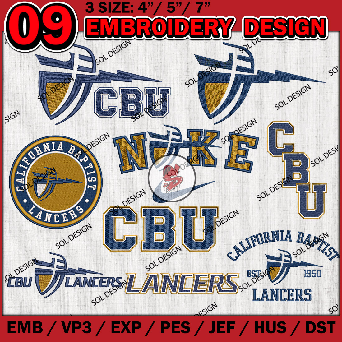 9 California Baptist Lancers Bundle Embroidery Files, College Football Embroidery Designs, NCAA California Baptist Lancers Machine embroidery Design Bundle, Ncaa California Baptist Logo bundle, Digital Download