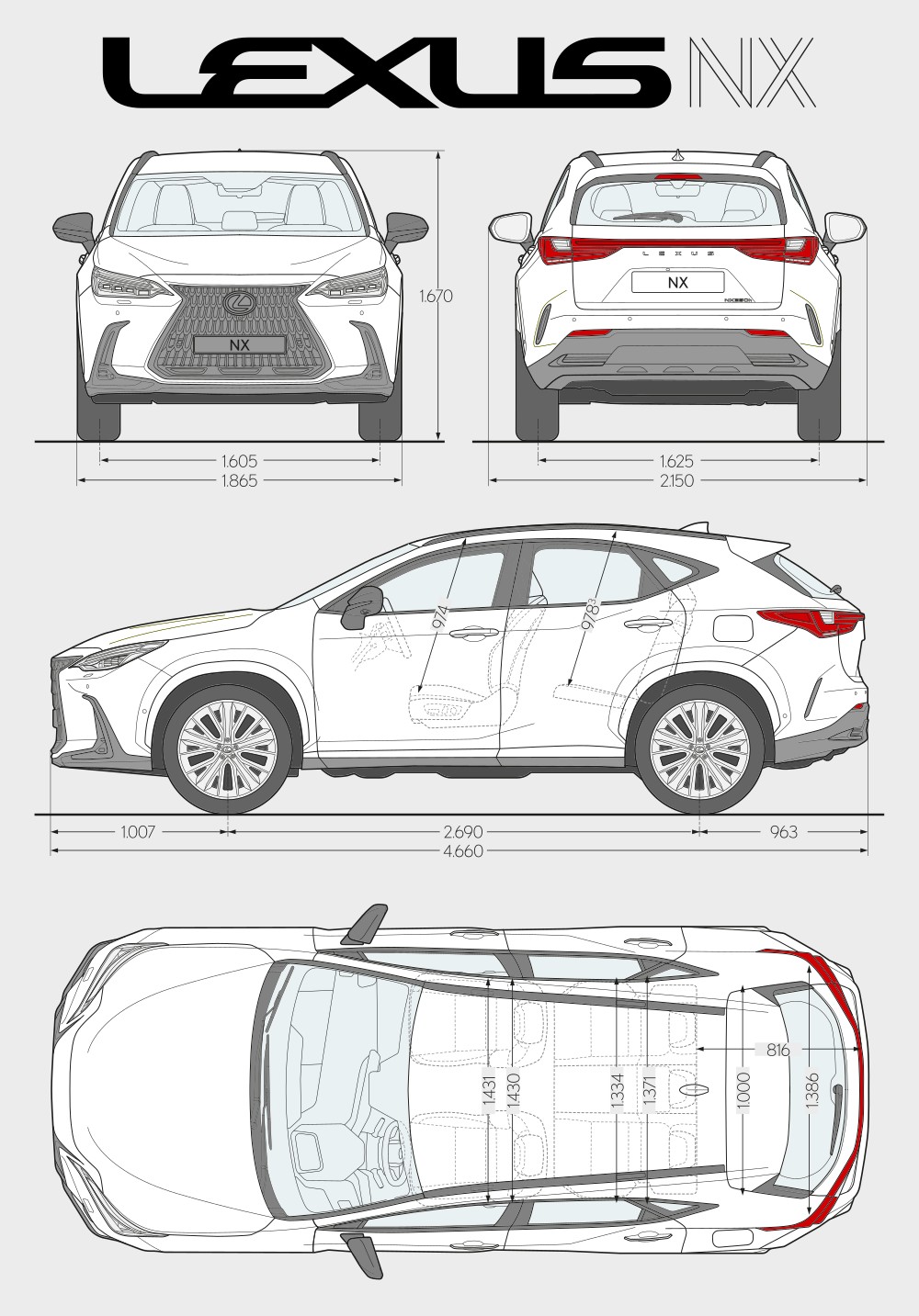Lexus NX Car Blueprint PDF SVG Vector Drawing.