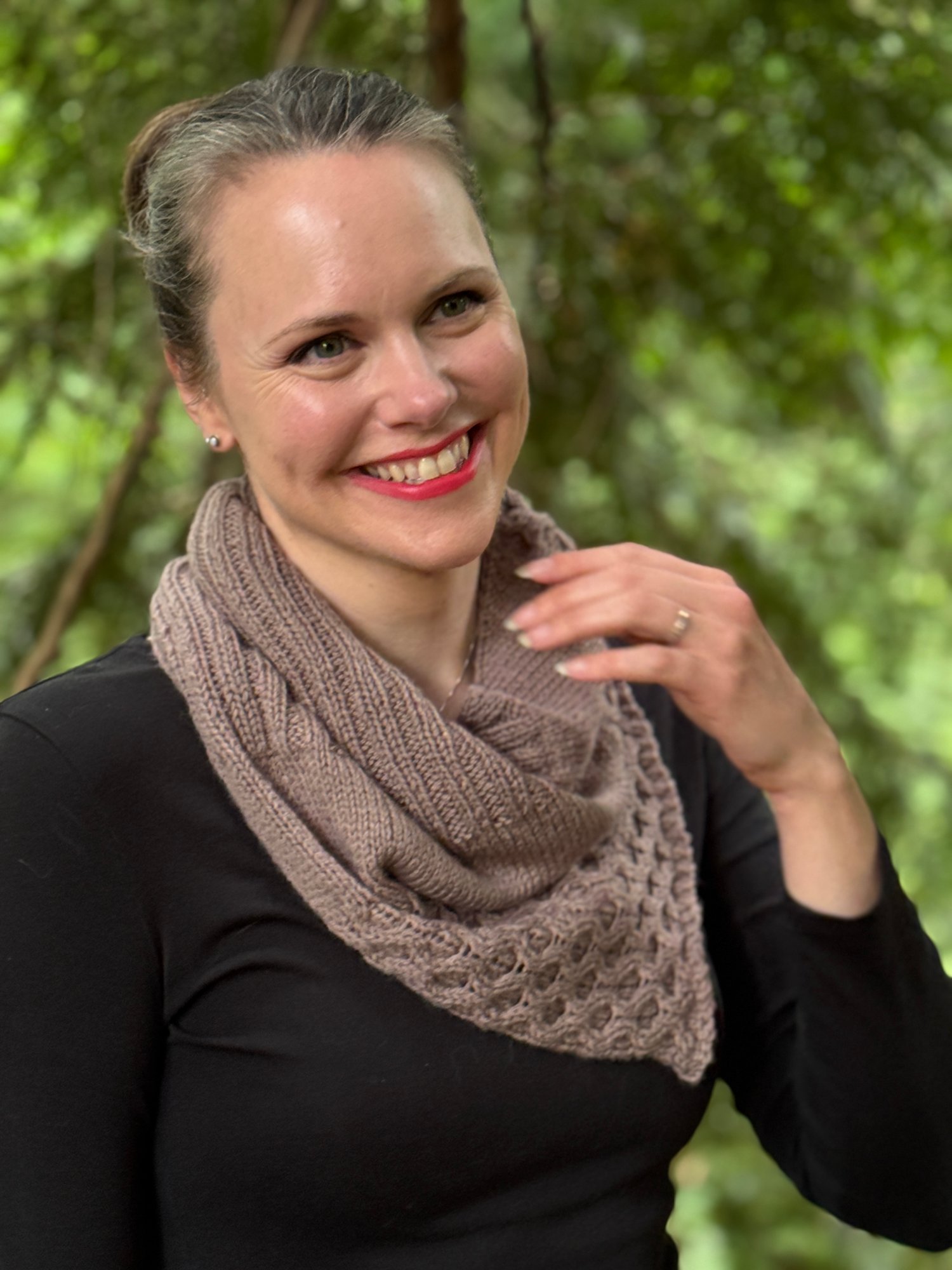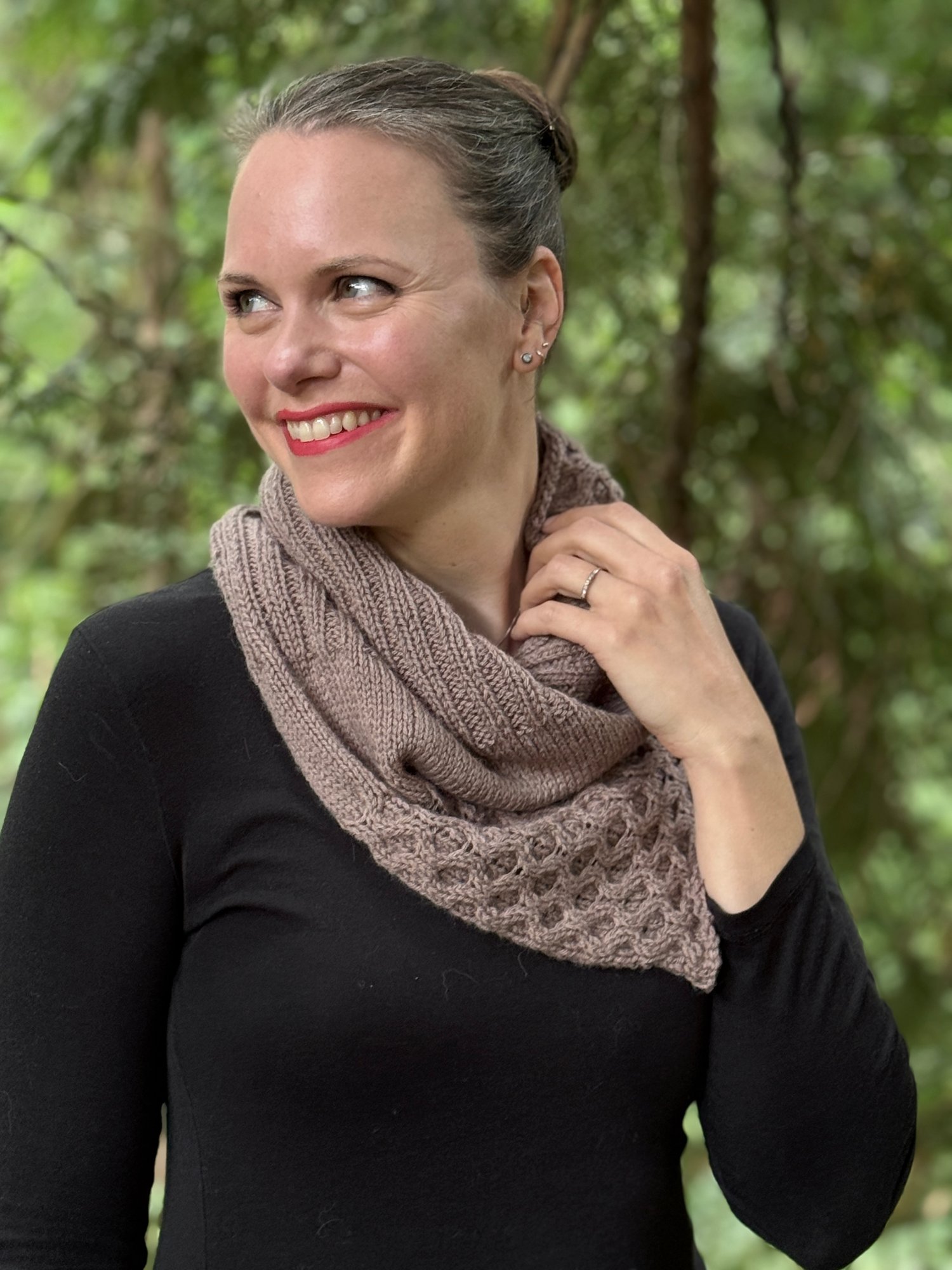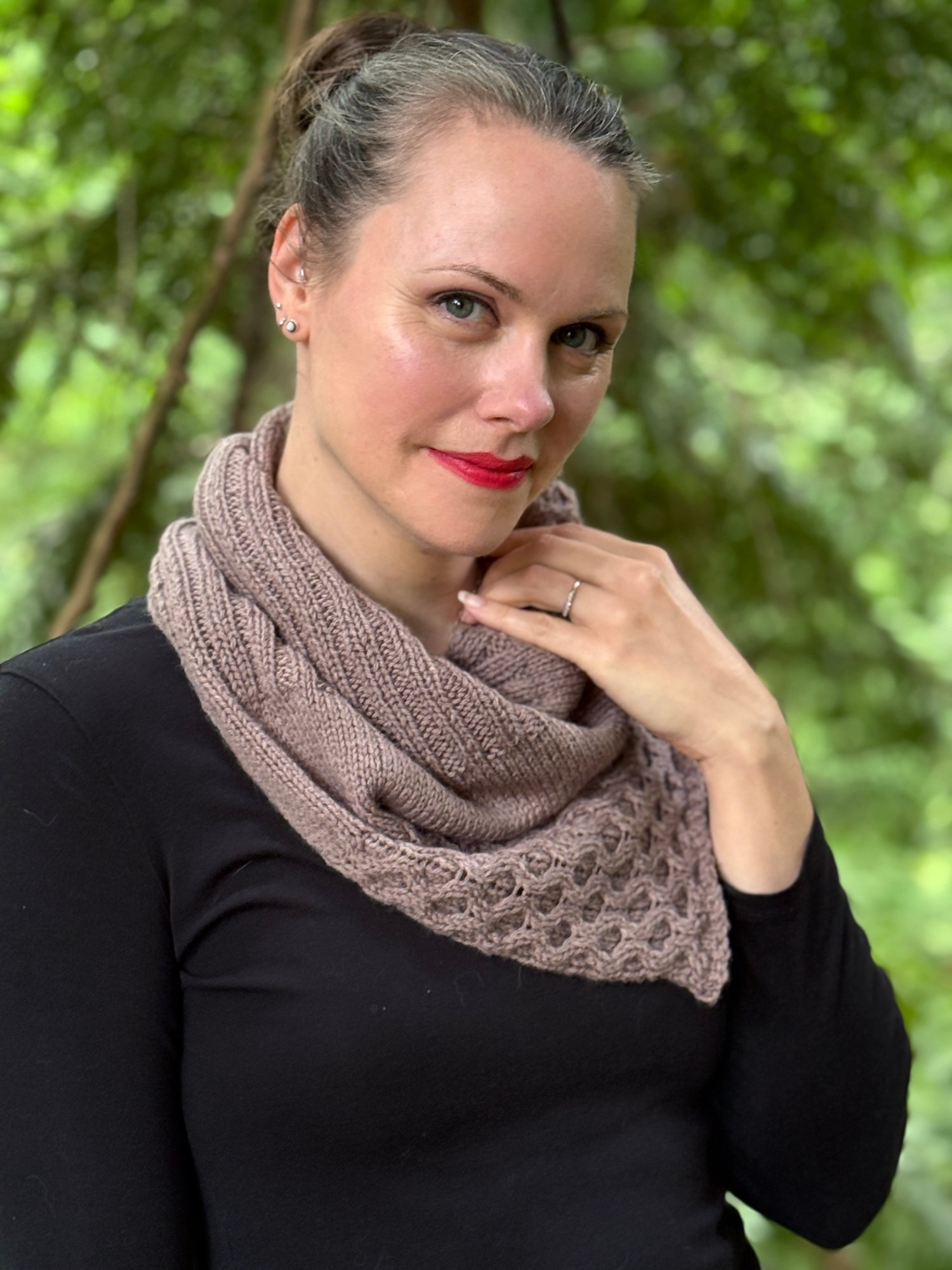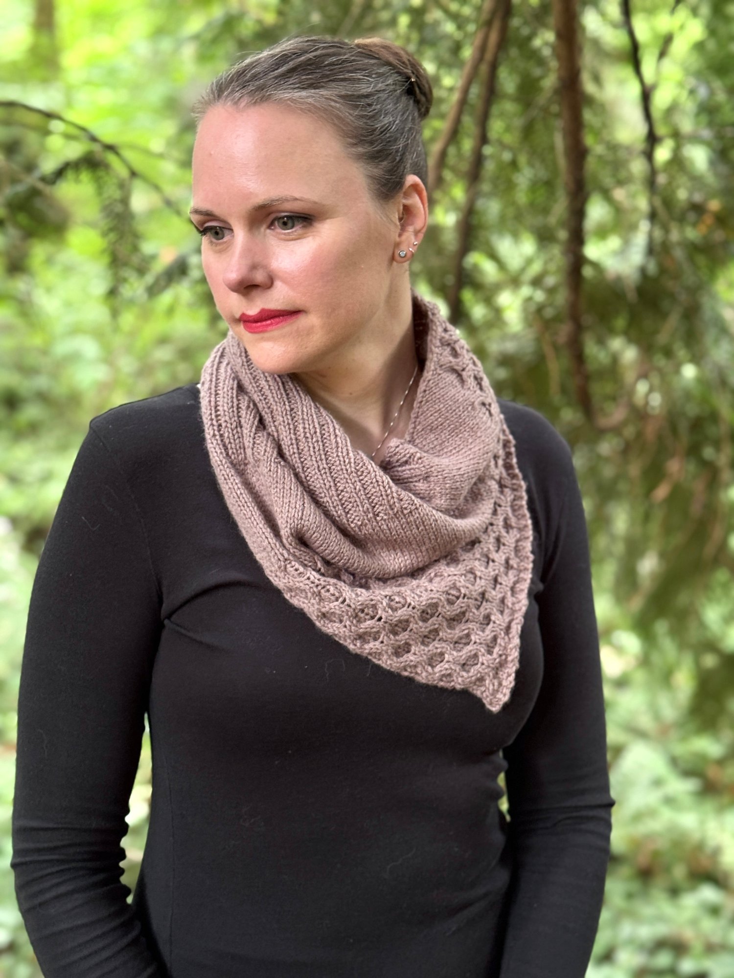 In the world of knitting, there are kindred spirits found in the simplest of actions: the rhythmic dance of the knit and purl stitches. These fundamental elements, seemingly unassuming on their own, repeatedly combine to unlock a universe of texture and design. From the smooth, serene canvas of stockinette to the comforting embrace of rib stitches and the intricate artistry of cables, these classic stitches are the very foundation of all things knitted, working in perfect harmony to bring beauty to life.Just as Anne Shirley discovered, "Kindred spirits are not so scarce as I used to think. It's splendid to find out there are so many of them in the world.” This sentiment resonates deeply with the joy of creating and connecting through craft.The Kindred Spirits cowl embodies this delightful discovery. It's a truly simple and satisfying knit, designed to work up quickly in DK weight yarn. The result is a wonderfully versatile and cozy everyday accessory, or the perfect, heartfelt gift to share with your own kindred spirit. Wrap yourself in the warmth of connection, stitch by thoughtful stitch.