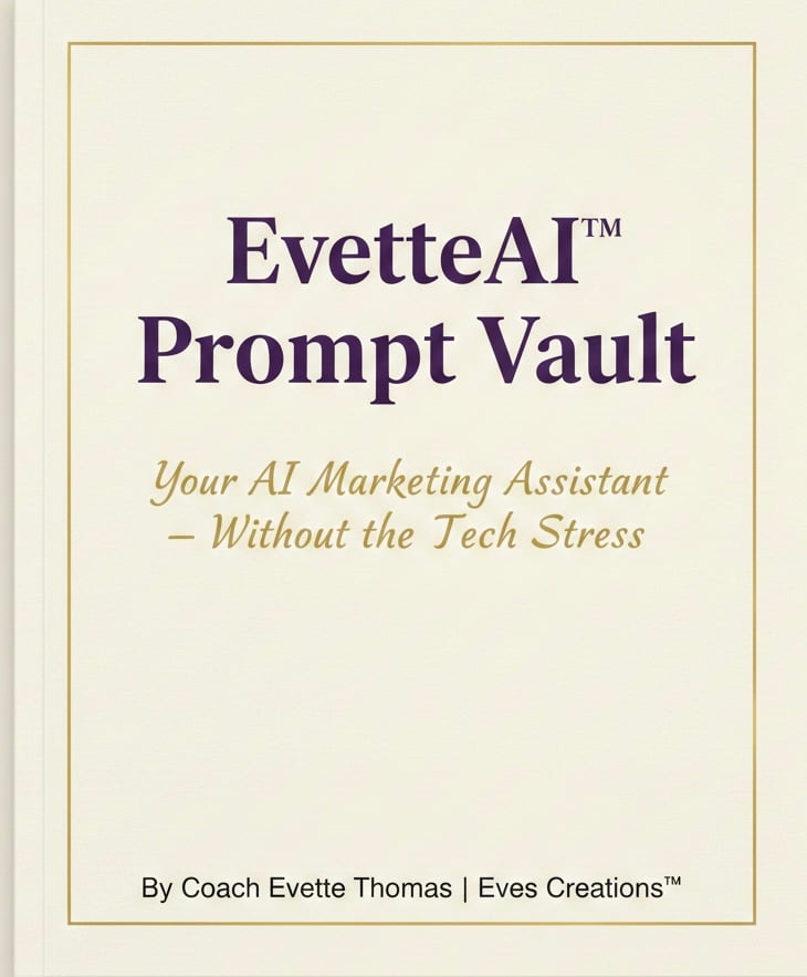 EvetteAI™ Prompt Vault is a guided collection of proprietary prompts designed to help coaches communicate clearly, confidently, and consistently—without burnout.