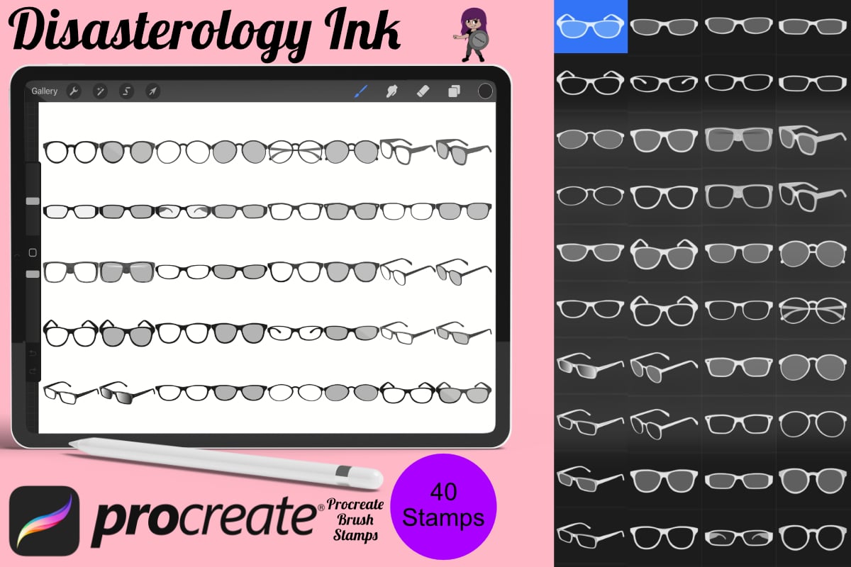 Facial Glasses Set 2 Procreate Brush Stamps, 40 Pairs of Glasses