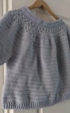 US terminology used throughout with double crochet, chain and slip stitches to create this jumper crocheted from the top down before splitting for the body and then returning to the sleeves. As this is a one piece construction there are only the ends to sew in.