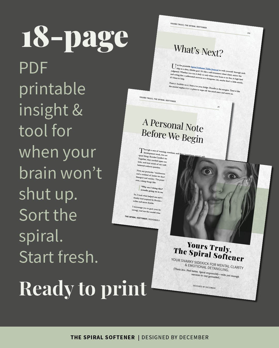 Meet The Spiral Softener—your snarky sidekick for mental clarity and emotional detangling.