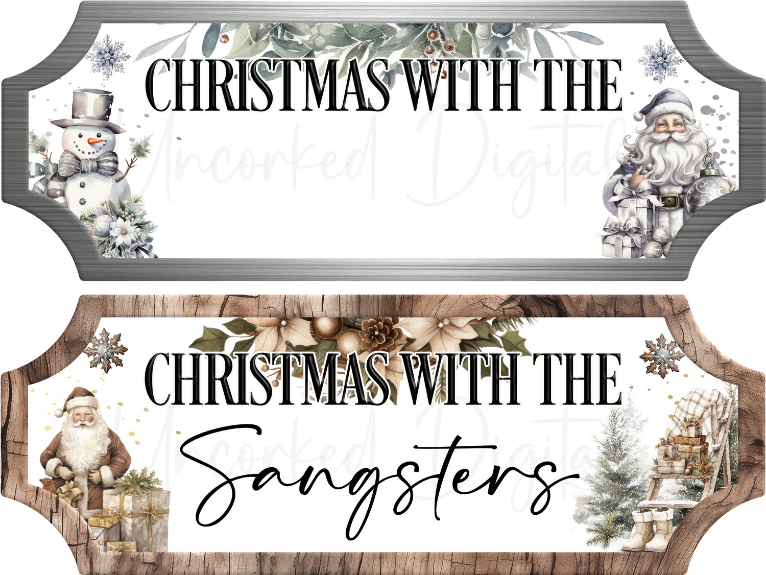 Christmas with the wavy streets signs, with and without text (woodform)