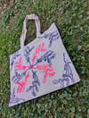 Hand Printed (Linocut/Block Printed) Cotton Tote Bag- Maple Seed Mandala Seamless Purple/Pink