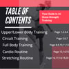 This ebook has five different types of programs that you can choose from depending on your preference. You can try following an upper-lower body split, a routine for circuit training or full-body. I added a template for cardio and HIIT if your goal is to lose fat. You also have a stretching routine that you can perform in conjunction to all programs.