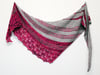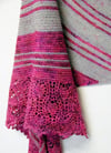 Zusammen is a two-color shawl with an asymmetrical triangle shape. The shawl is knitted in fingering-weight yarn and features garter stitch, short rows, stripes, and lace… all the things you love! Pick two skeins of different colors and let them blend together. Use colors with a strong contrast to create a striking, graphic look, or two complementary colors for a smooth and subtle effect.For the MC, choose a solid, semi-solid, speckled, or variegated yarn. Pick a solid or semi-solid, with or without subtle speckles, for CC.