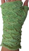 Mitts are worked in the round in an all-over pattern, resulting in mitts that work equally well on either hand, which is perfect for people like me who always manage to grab the wrong one first. Thumb gusset is worked in stockinette stitch.