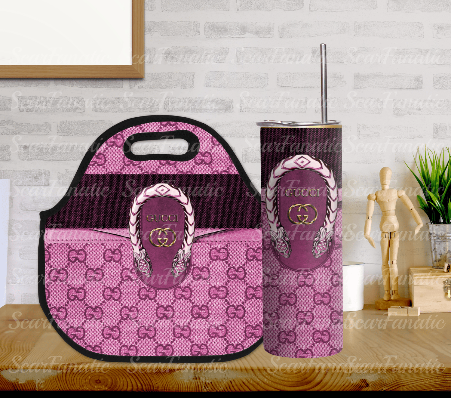 Pink GCC Denim Purse Look 20oz Zipper Tumbler and Lunch Tote PNG Design Bundle 3 Designs