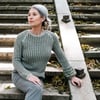 Lyrah is worked seamlessly from the top down. The upper yoke is worked flat, until the final front neck cast-on. When the neck shaping is completed, the yoke is worked in the round to the underarms, where body and sleeves are separated. The sleeve stitches are placed on hold, and the body is worked in the round to the ribbing. Then the sleeves are worked in the round until the cuffs.The pattern includes directions for two different sleeve options; the ‘sporty’ sleeve (worked in the same pattern as the body and tapered towards the wrist), and the ‘festive’ sleeve (lower sleeve worked in zigzag pattern, and slightly puffy).