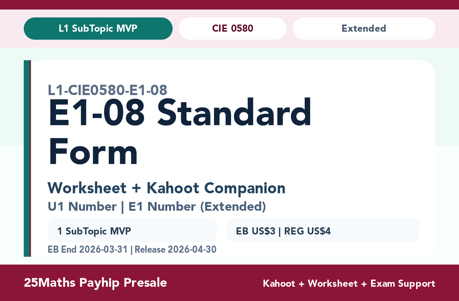 Master Estimation and Approximation for your CIE 0580 Extended Exam with our Interactive Practice Suite! Whether you're a student securing your advanced marks or a teacher looking for engaging classroom resources, this worksheet and Kahoot combo is built directly from the official CIE syllabus.