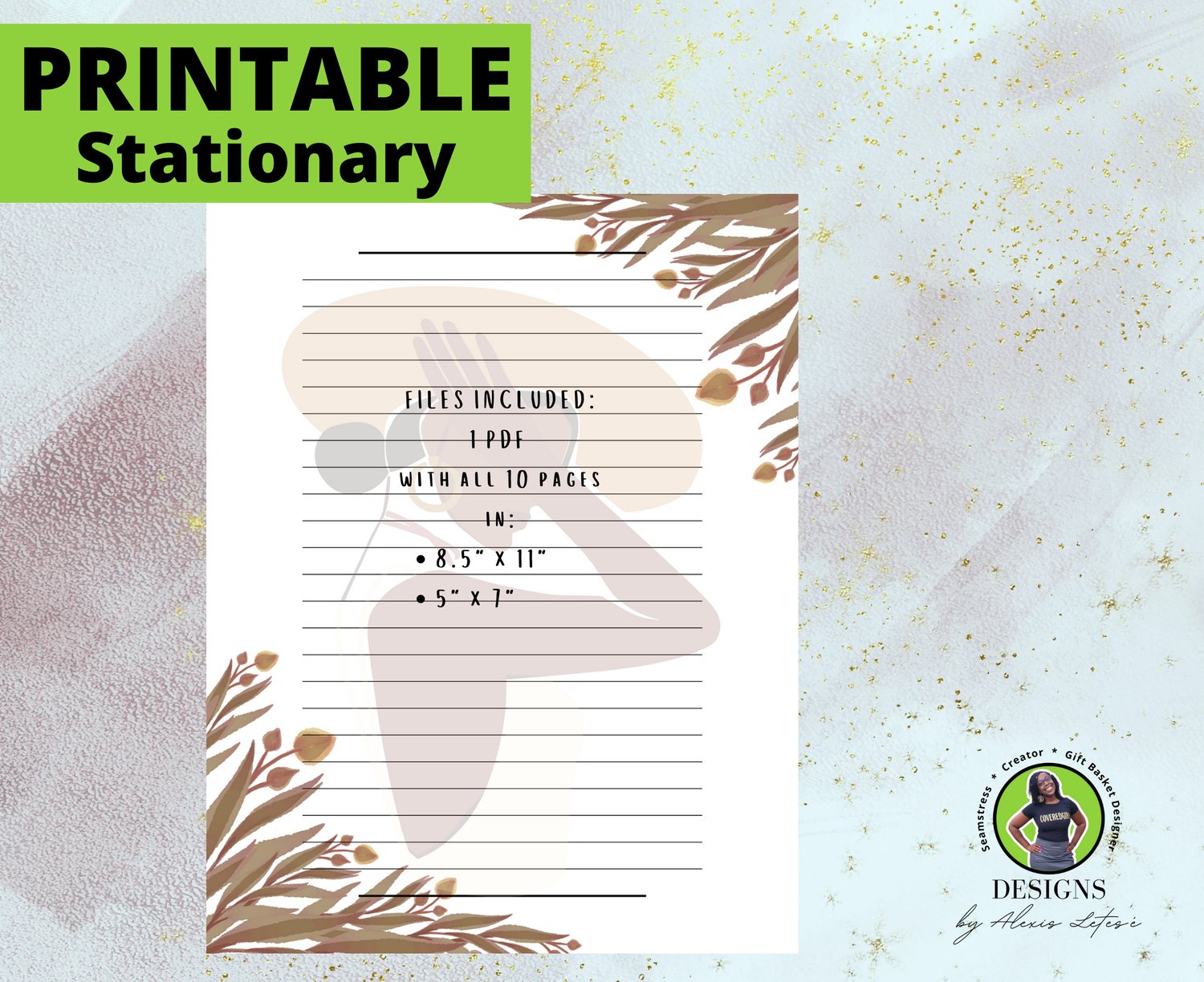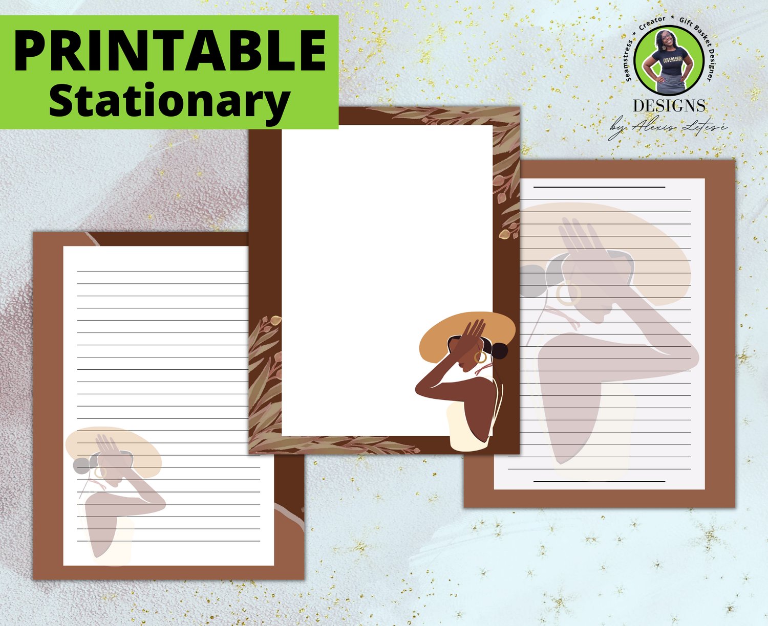 Black Girl Magic Sun Hat Stationery Collection | Elegant Earth Tone Writing Paper in Two Sizes | Botanical African American Art | Digital Journal Pages | Instant Download