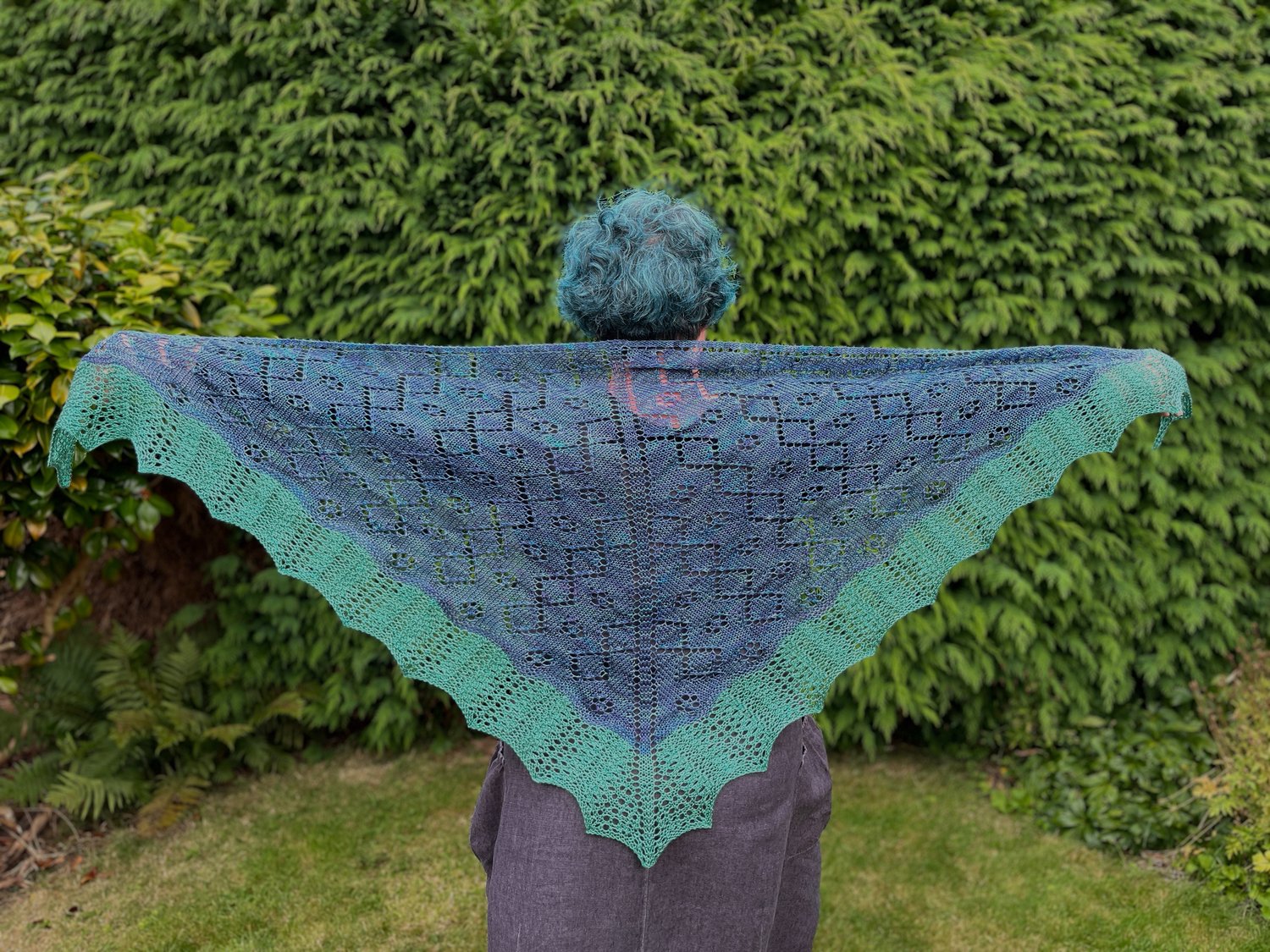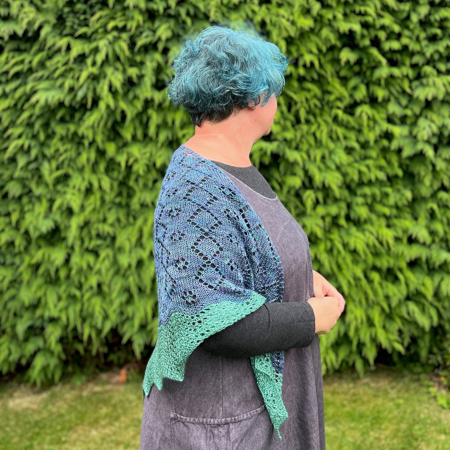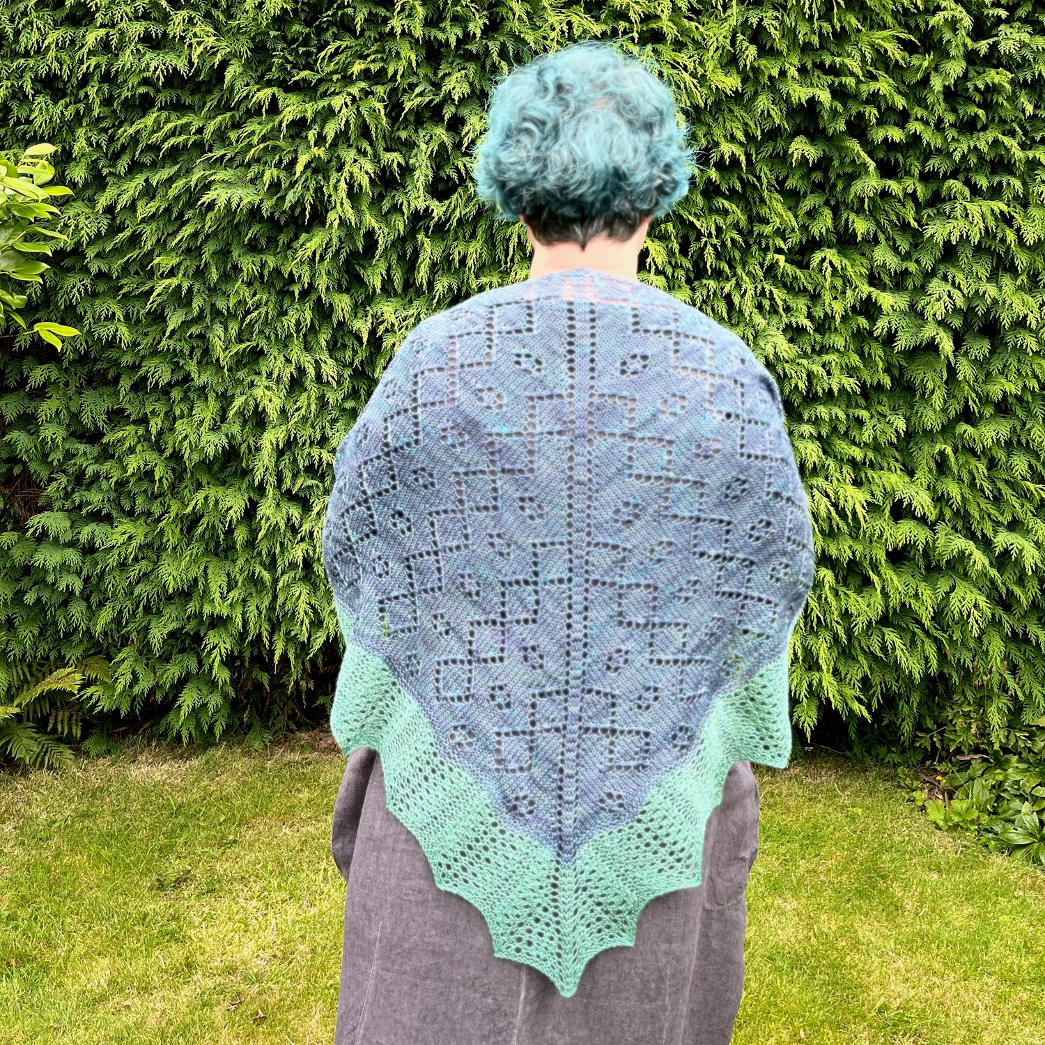 Draig y môr is Welsh for Sea Dragon and this shawl has echoes of both dragon wings and sea foam in its stitch patterns. Worked from the top down, the shawl increases in size throughout, including during the edging in the contrast colour. Draig y môr is the perfect shawl to finish off an outfit, whether for a special occasion or a cooler evening.