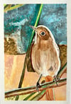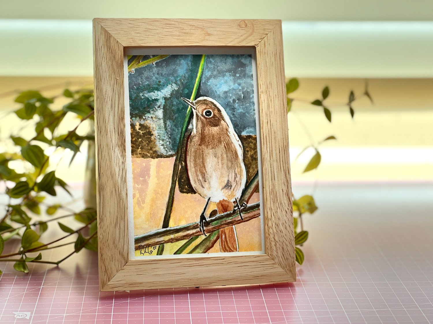 A 4×6 inch watercolor painting featuring an adorably photogenic Daurian Redstart female perched by my window. The female Daurian Redstart doesn’t sing much, but they’re unusually brave and comfortable perching relatively close to humans. This high-resolution digital download allows you to enjoy a piece of Korean wildlife art, perfect for birders and bird lovers everywhere.