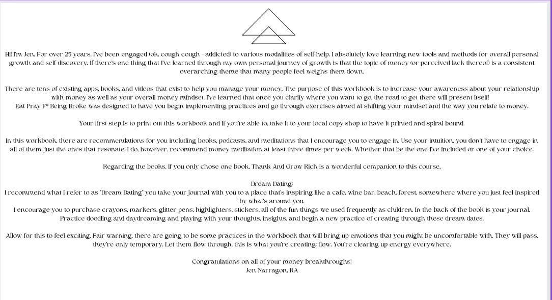 This freshly revised 55-page course workbook is designed to guide you from financial frustration to flourishing freedom. Whether you're under-earning, rolling in riches but feeling restricted, or simply seeking a profound relationship with your finances, this book would prove a transformative journey for you.