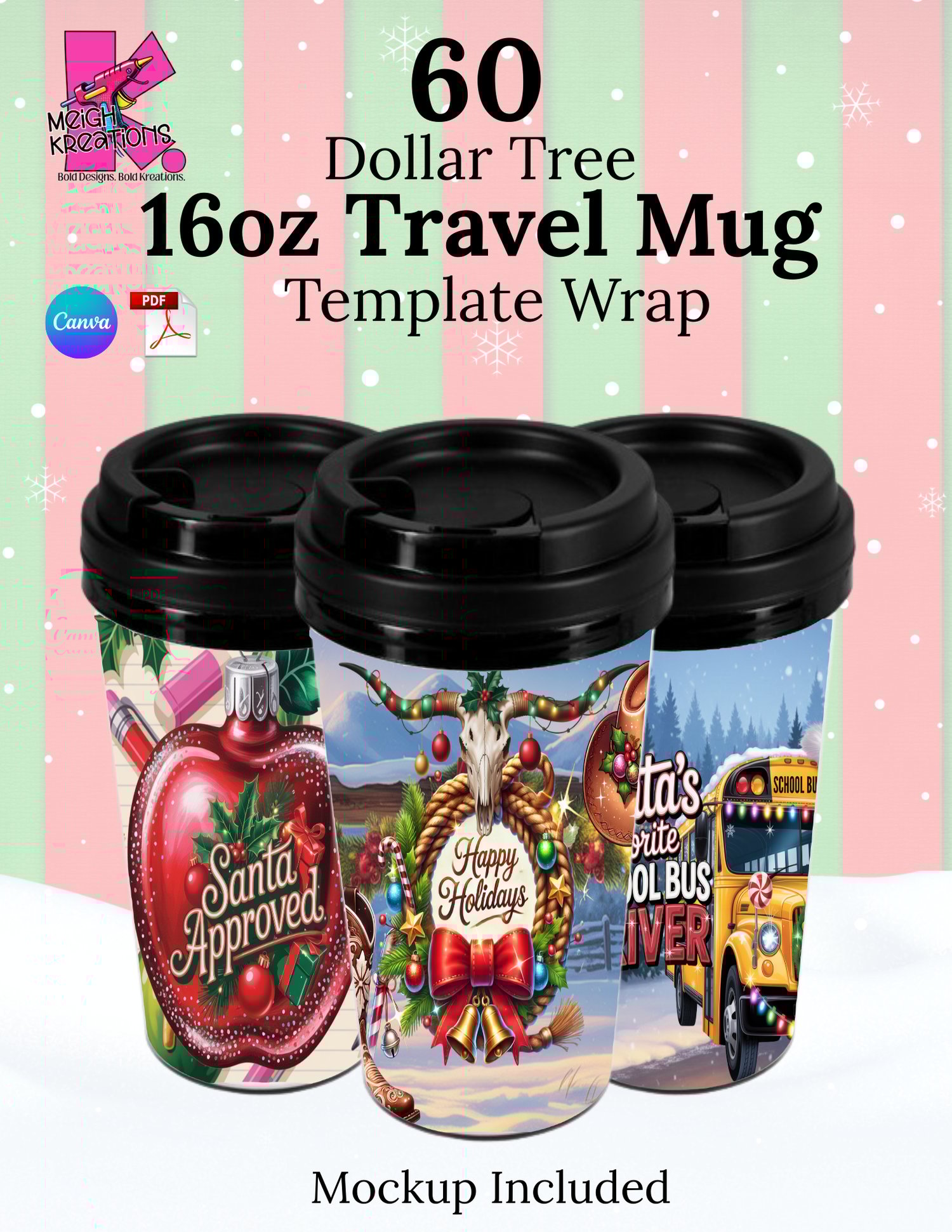 60- 16oz Dollar Tree Travel Mug Wrap Template Bundle