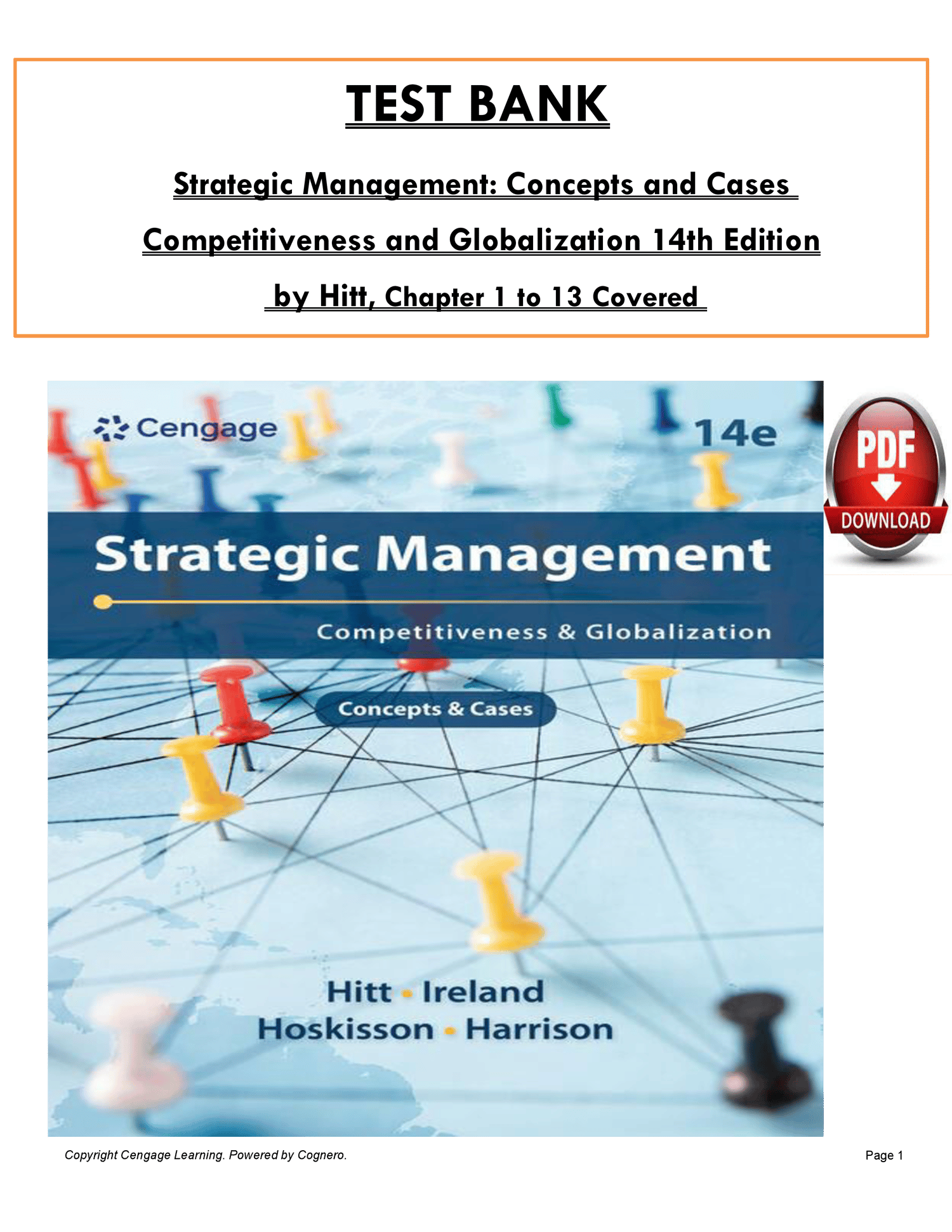 INSTANT PDF DOWNLOAD Unlock success with the official Test Bank for Strategic Management: Concepts and Cases, Competitiveness and Globalization, 14th Edition by Hitt, Ireland, Hoskisson, and Harrison.