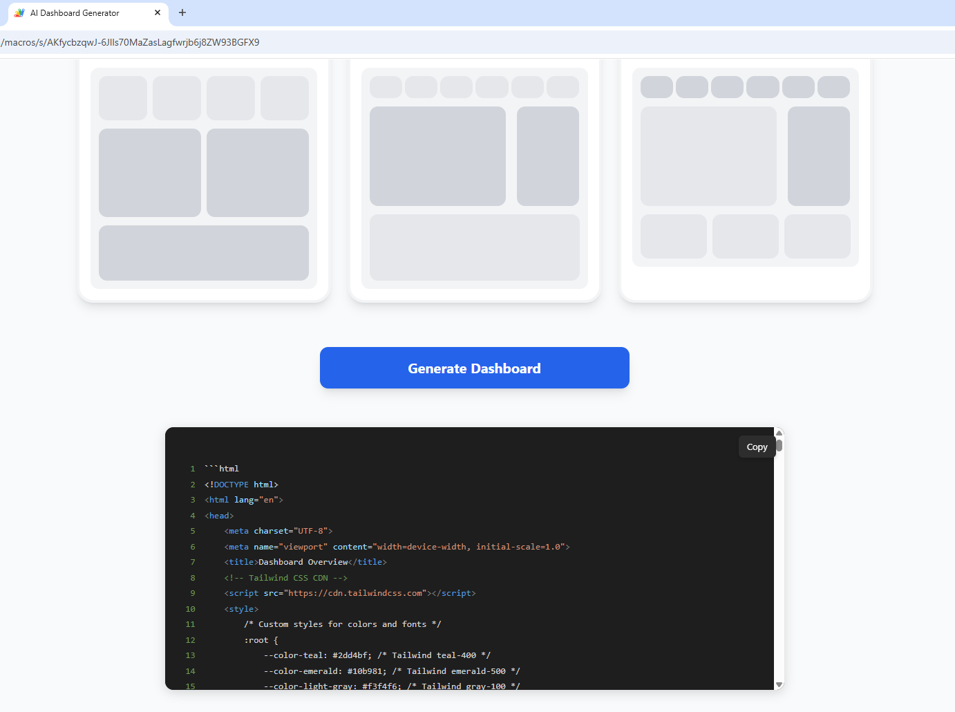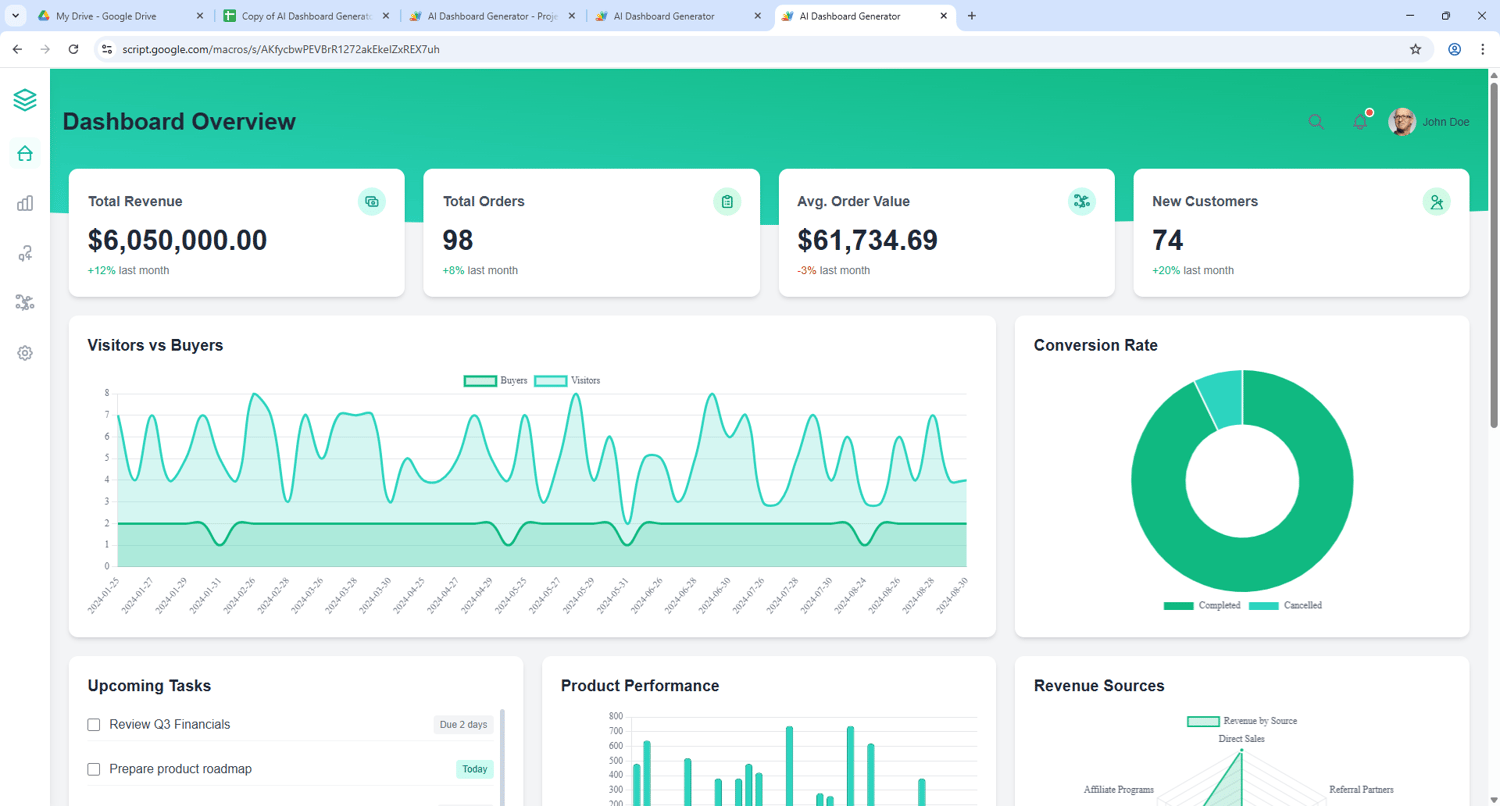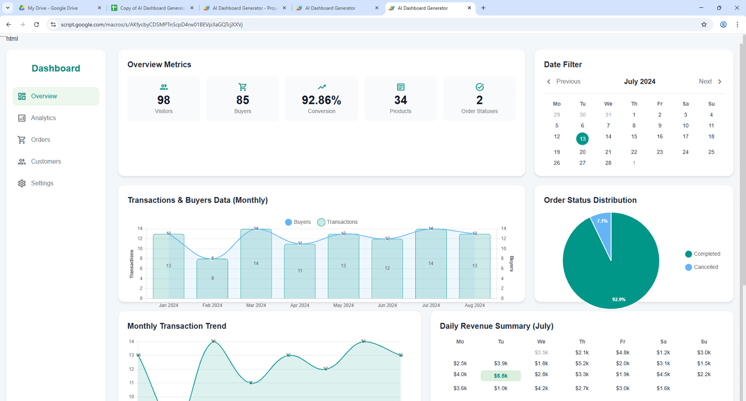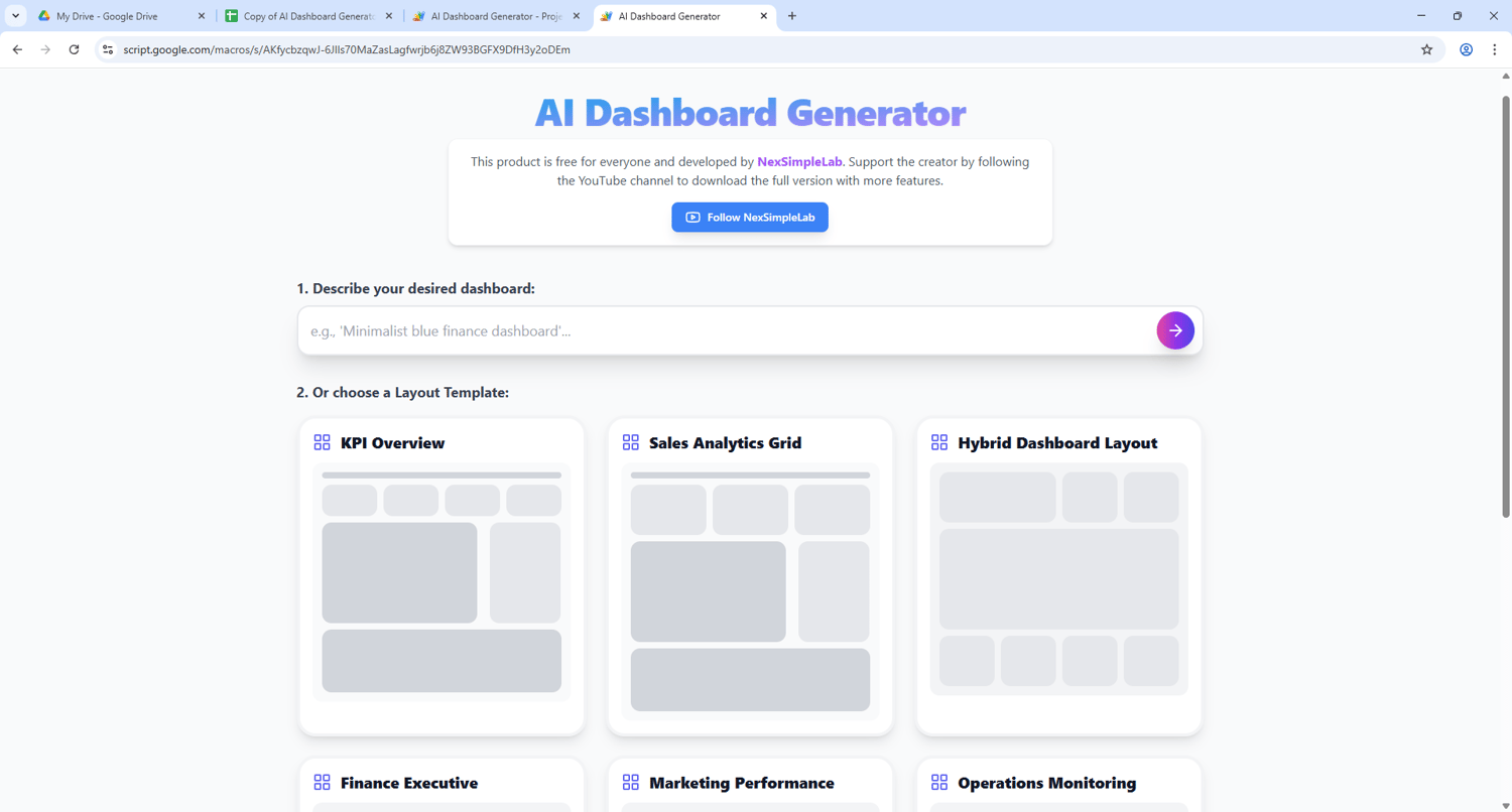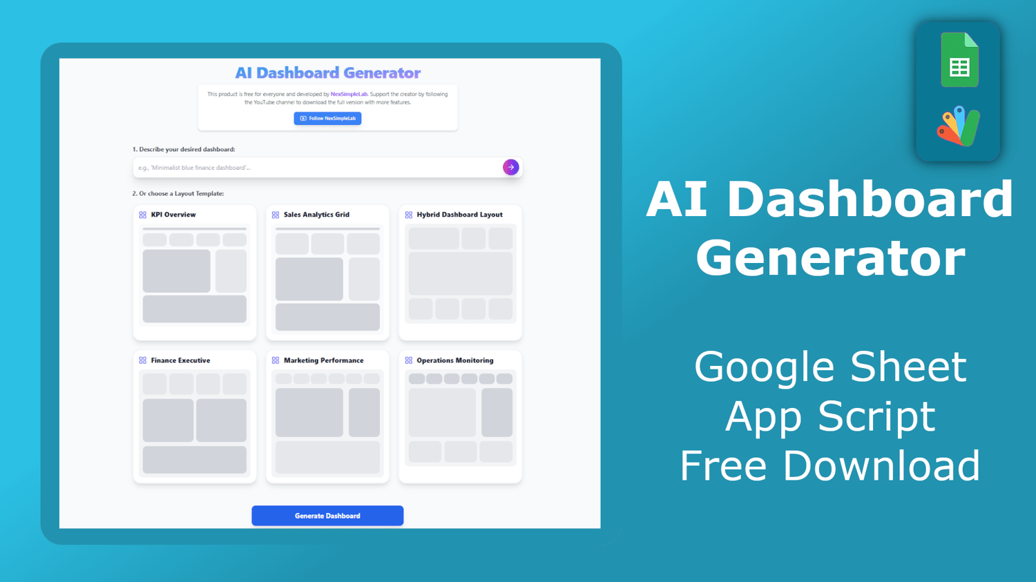 πΉ AI Dashboard Builder β Turn Google Sheets into a fully functional AI-powered dashboard using React, Gemini AI, and Apps Script β ready to deploy instantly.