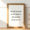 Digital Download of Minimalist printable Christian Sign - bible verse "You are blessed as you come in and blessed as you go out - Deuteronomy 28:6"