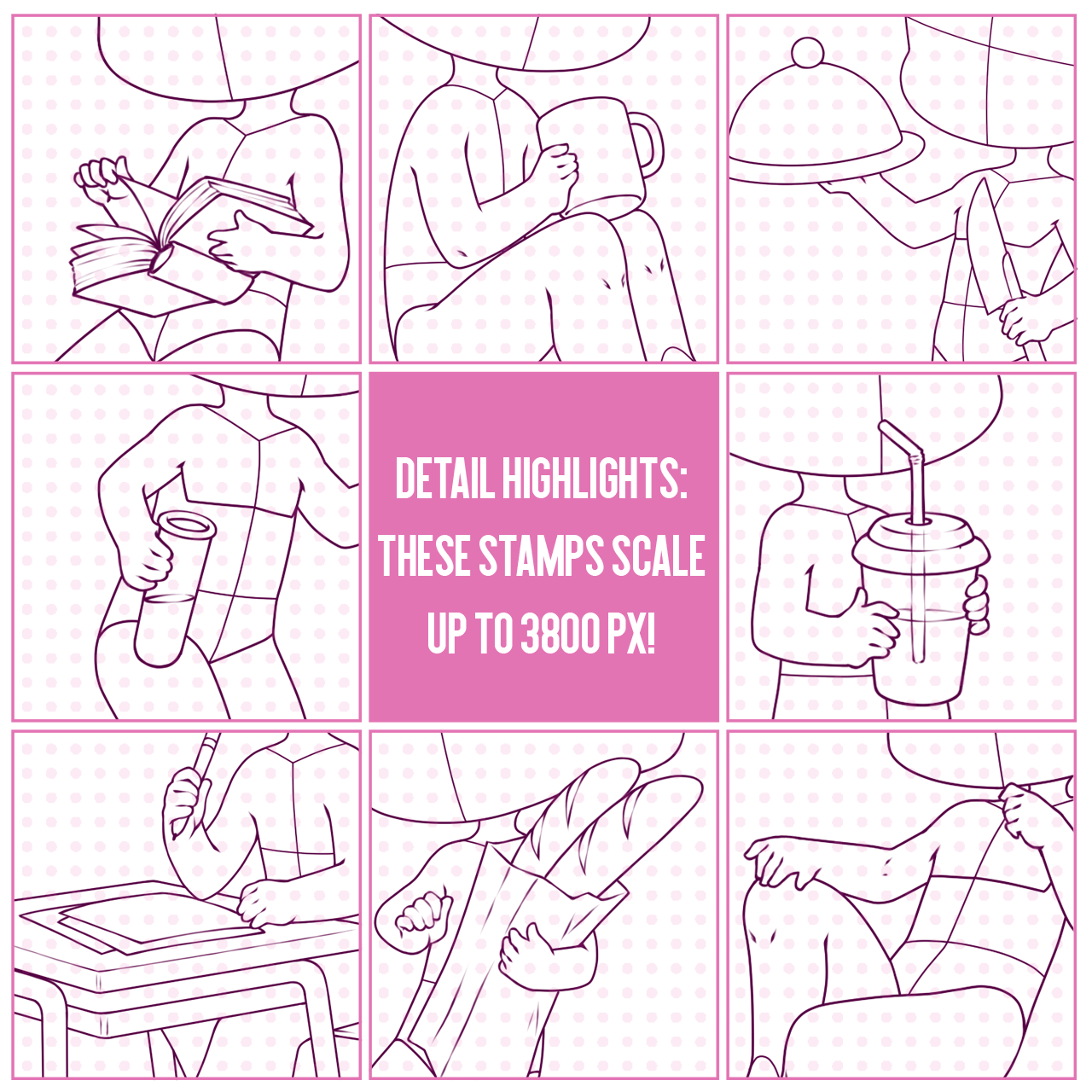 - You cannot copy, trace, or heavily reference my poses to create your own poses, stamps, brushes, templates, or other similar resources that you intend to sell or distribute, including pixel bases.