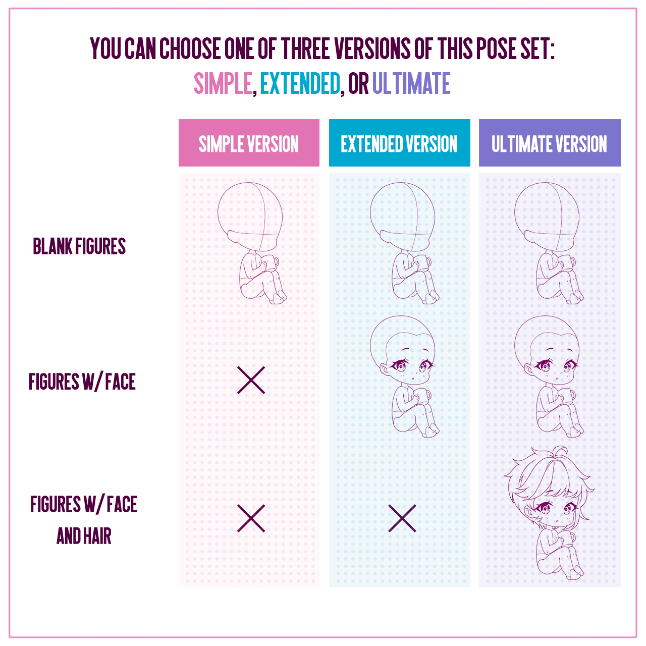 This chibi base collection features 27 sweetest and cutest chibi boy poses handpicked from a pose library that I created during more than five years of my art journey as a chibi artist. Compared to poses from Volume 1 and Volume 2 of my chibi boys collection, the ones from this pack tend to be softer and more rounded although there are a few badass poses among them :D These bases will work great for various types of kawaii and cartoon illustration, particularly for drawing reference sheets, creating adoptables, and drawing practice.