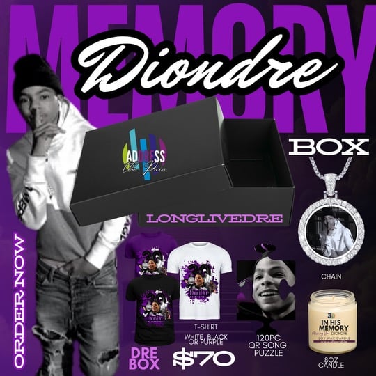 Included in this limited Edition Memory Box set will be a choice a t-shirt (white, purple or black) a chain with a photo, a memorial candle and a picture puzzle that will play one of his songs when you scan the included qr code.