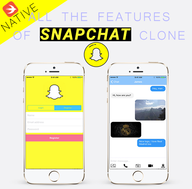Snapchat Clone Swift V.4 Firebase is the most advanced Snapchat Clone using Ios Swift developement. Actually, you can see all the functionalities of the original Snapchat including stories and deleting message system. Why are you waiting to buy it ? In fact, Our code are easy to modify even if you are not a programmer. Firebase is easy too. It's the easiest database storage. In addition, you can see all the post and emails that signed up.