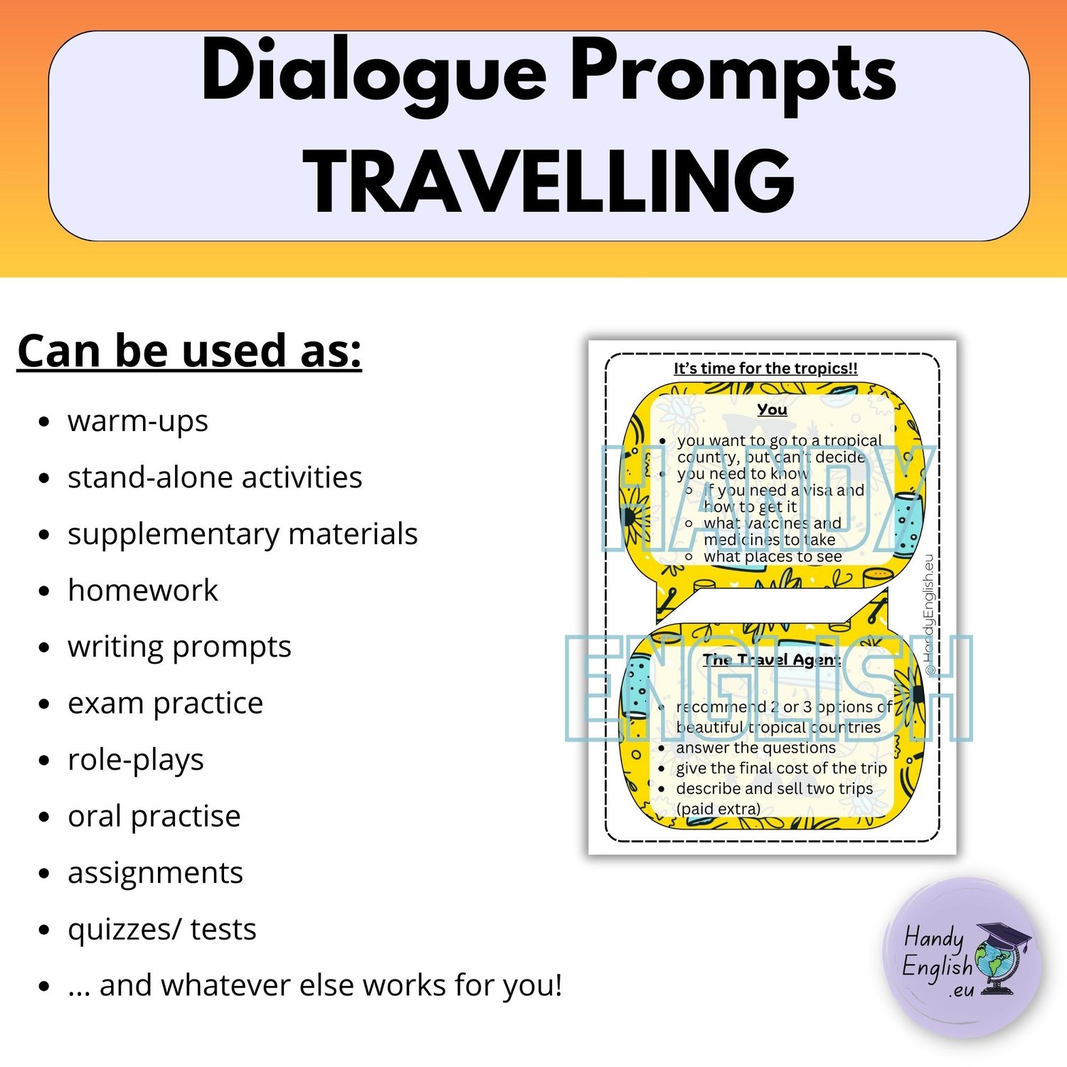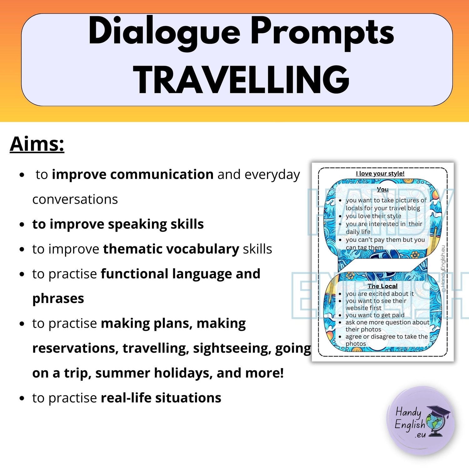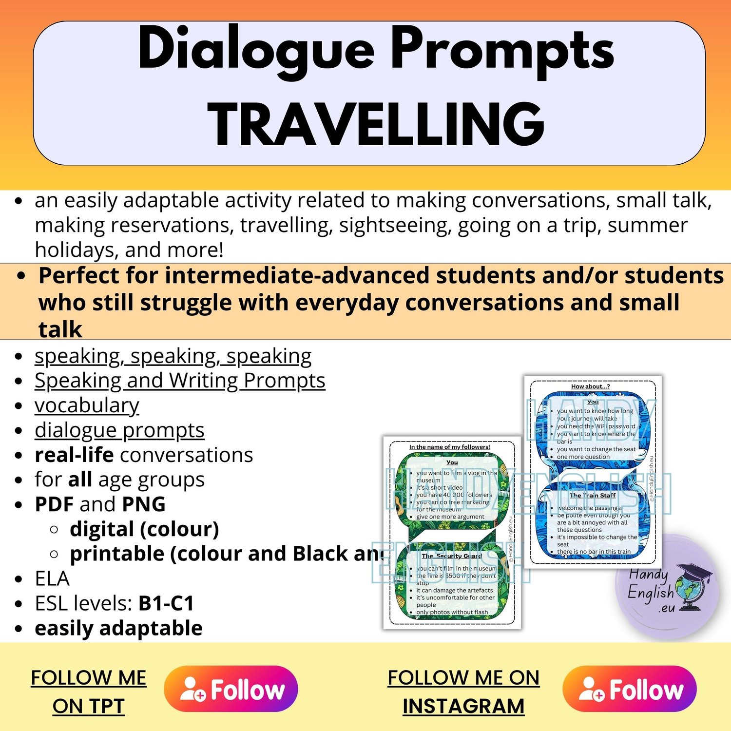 Make your Summer, Travel-themed and Vacation-themed lessons more fun with these no-prep Functional Language Dialogue Prompts for Intermediate ESL/ELA students