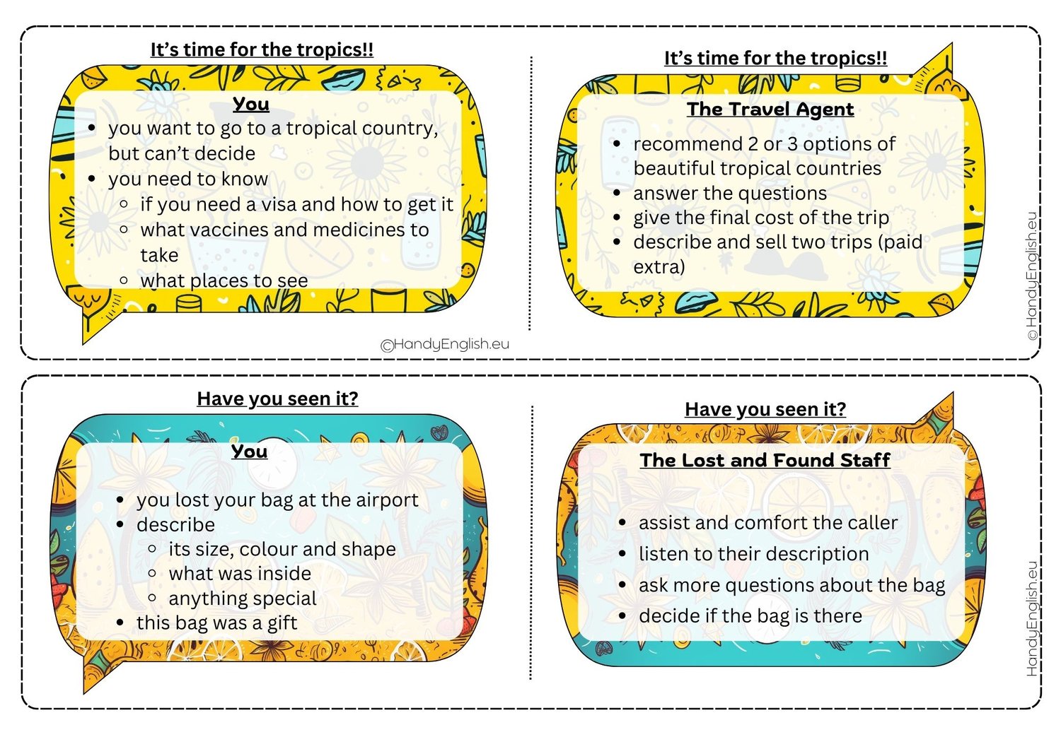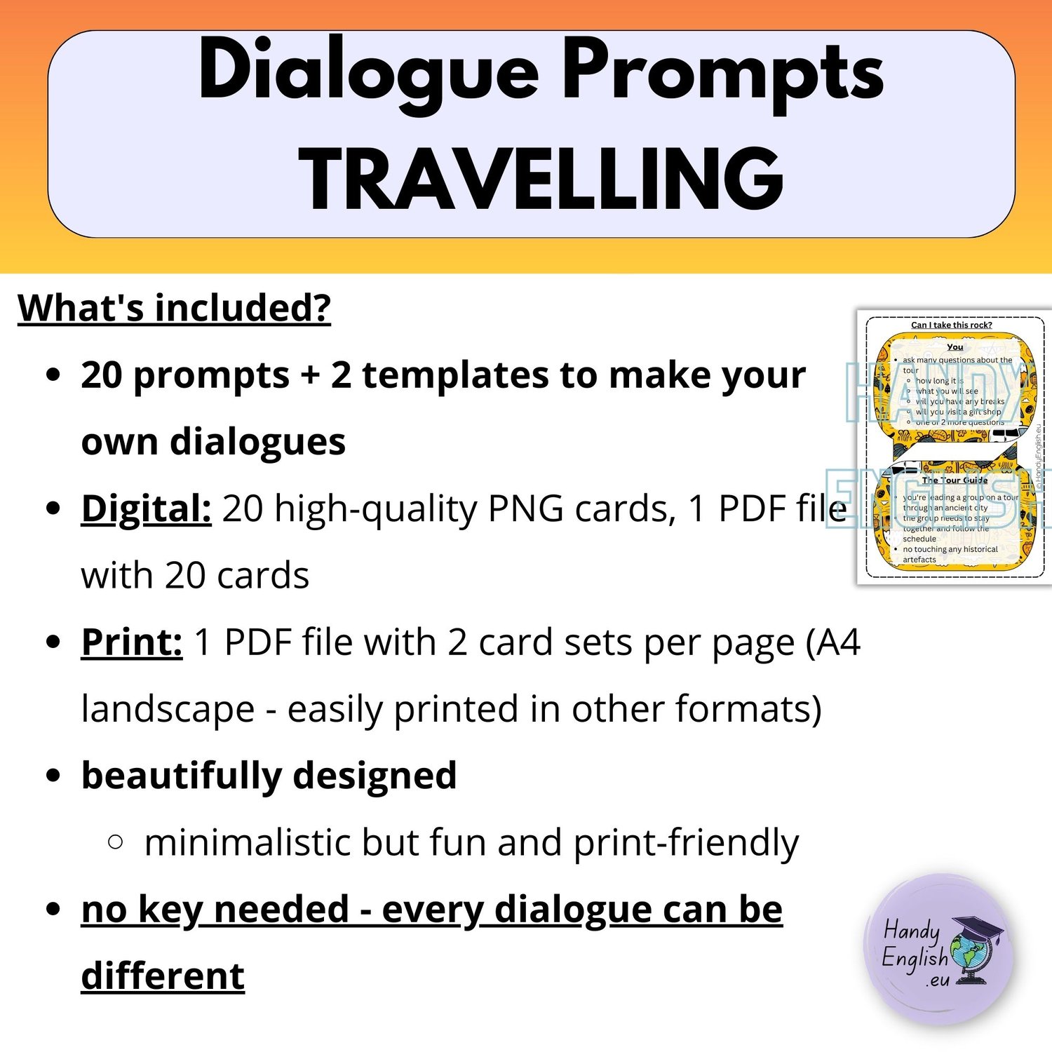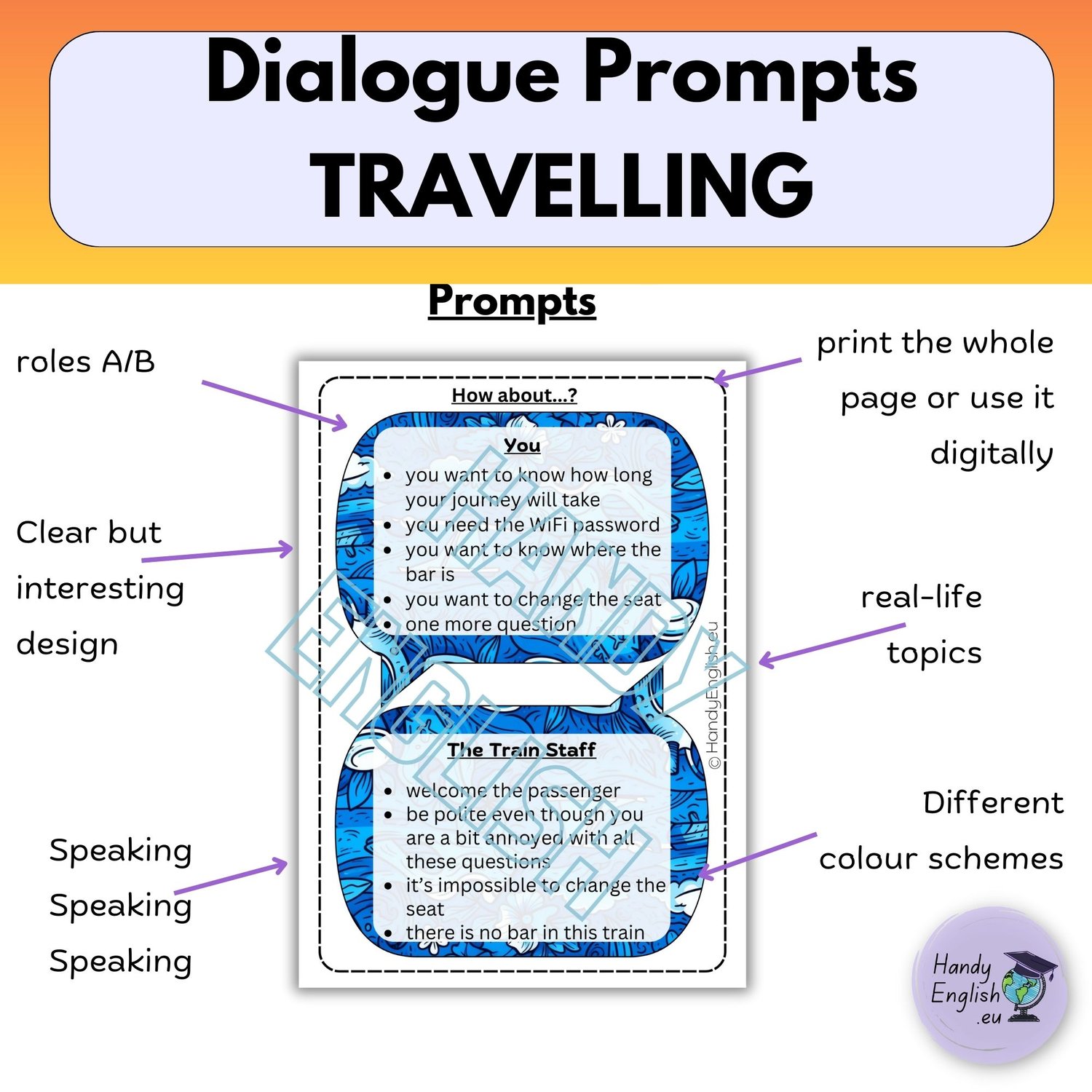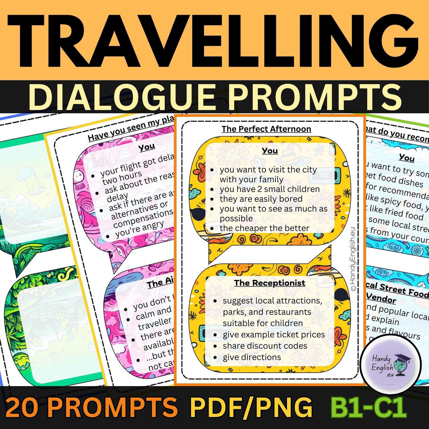 Make your Summer, Travel-themed and Vacation-themed lessons more fun with these no-prep Functional Language Dialogue Prompts for Intermediate ESL/ELA students