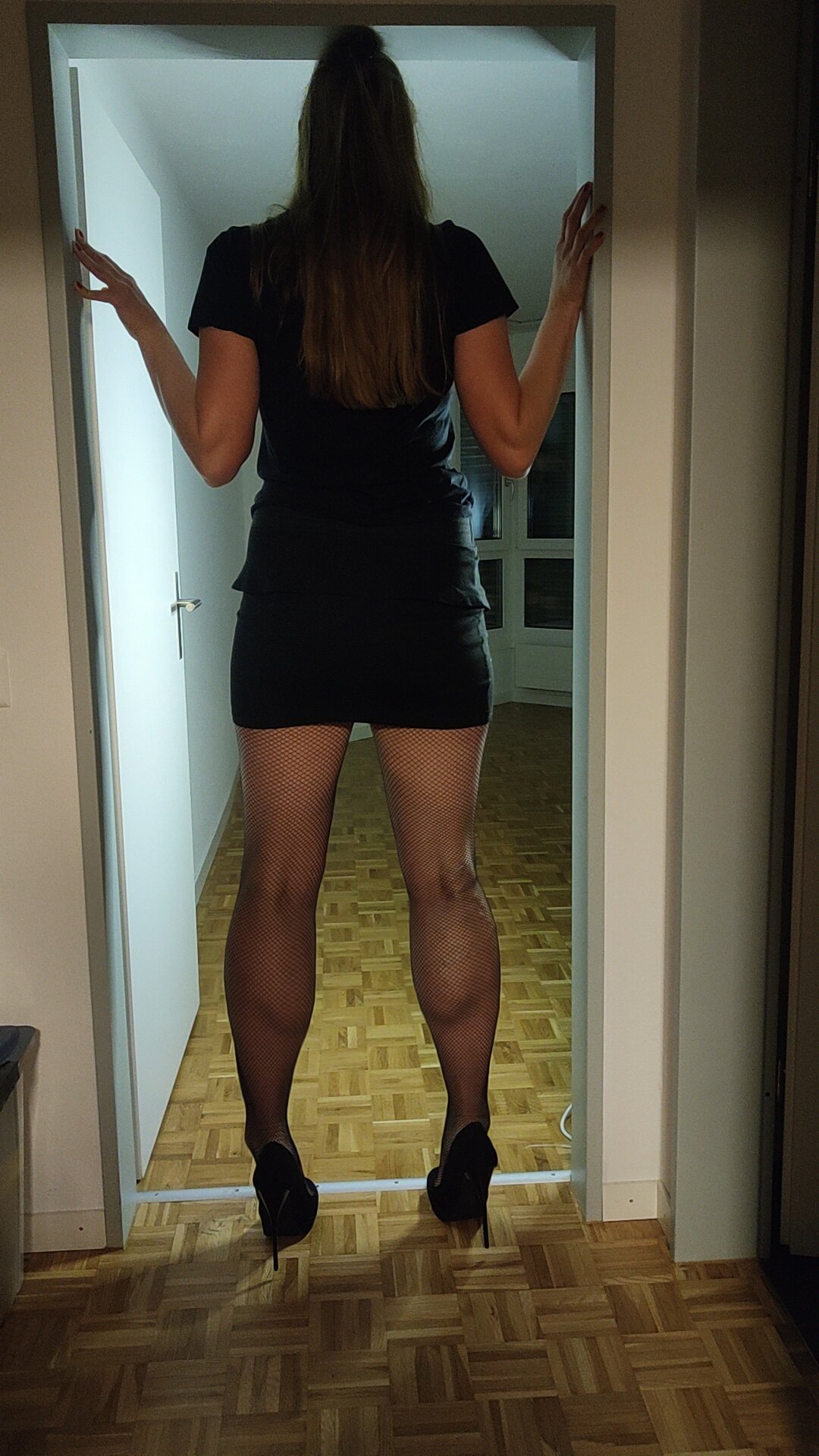 my strong long legs and big feet in fishnet stocking